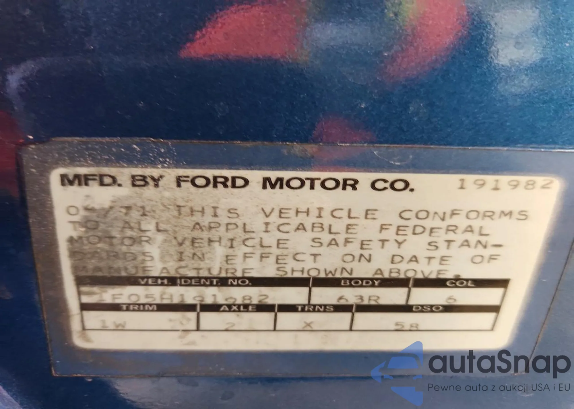 • VIN 1F05H191982