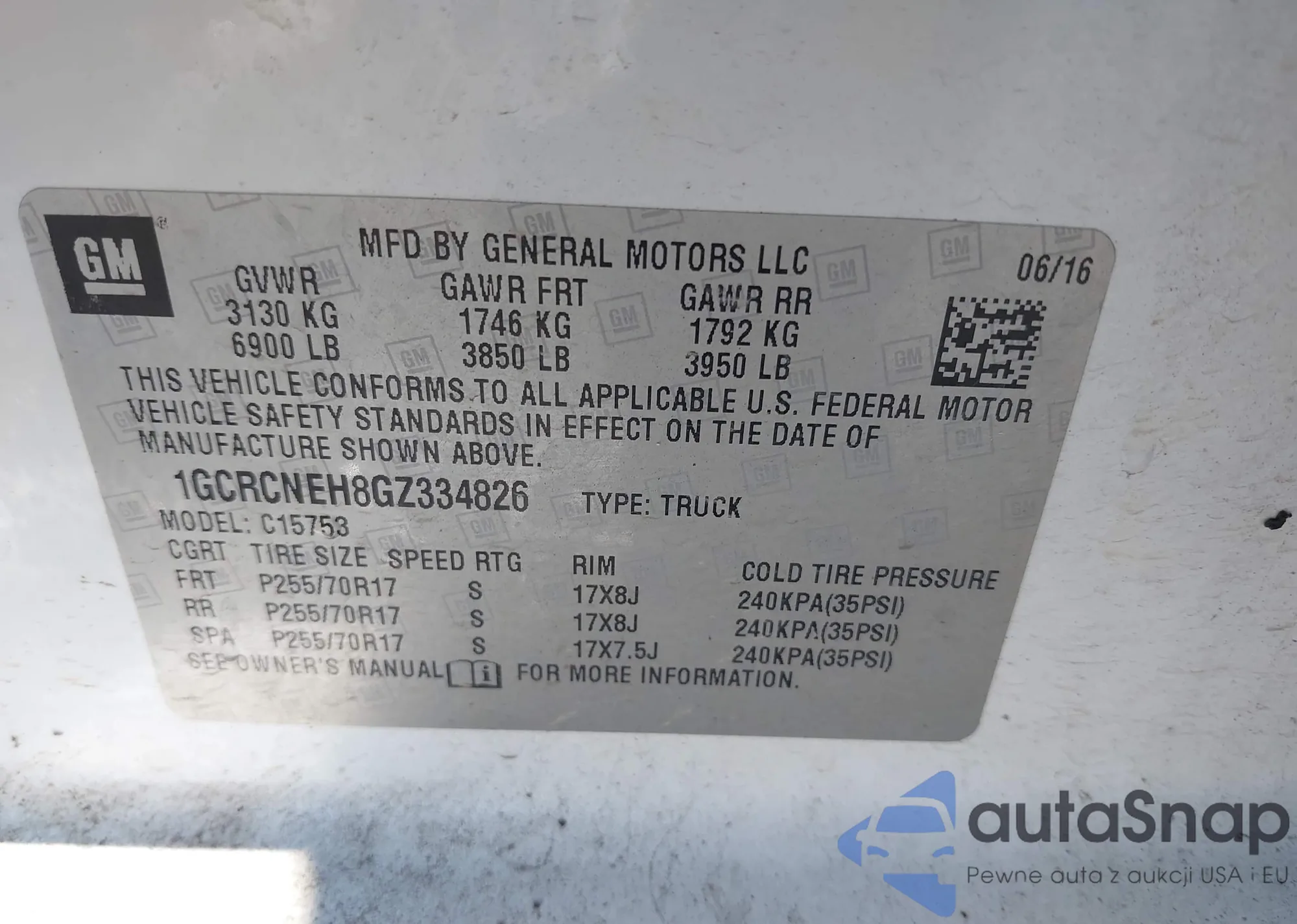 • VIN 1GCRCNEH8GZ334826