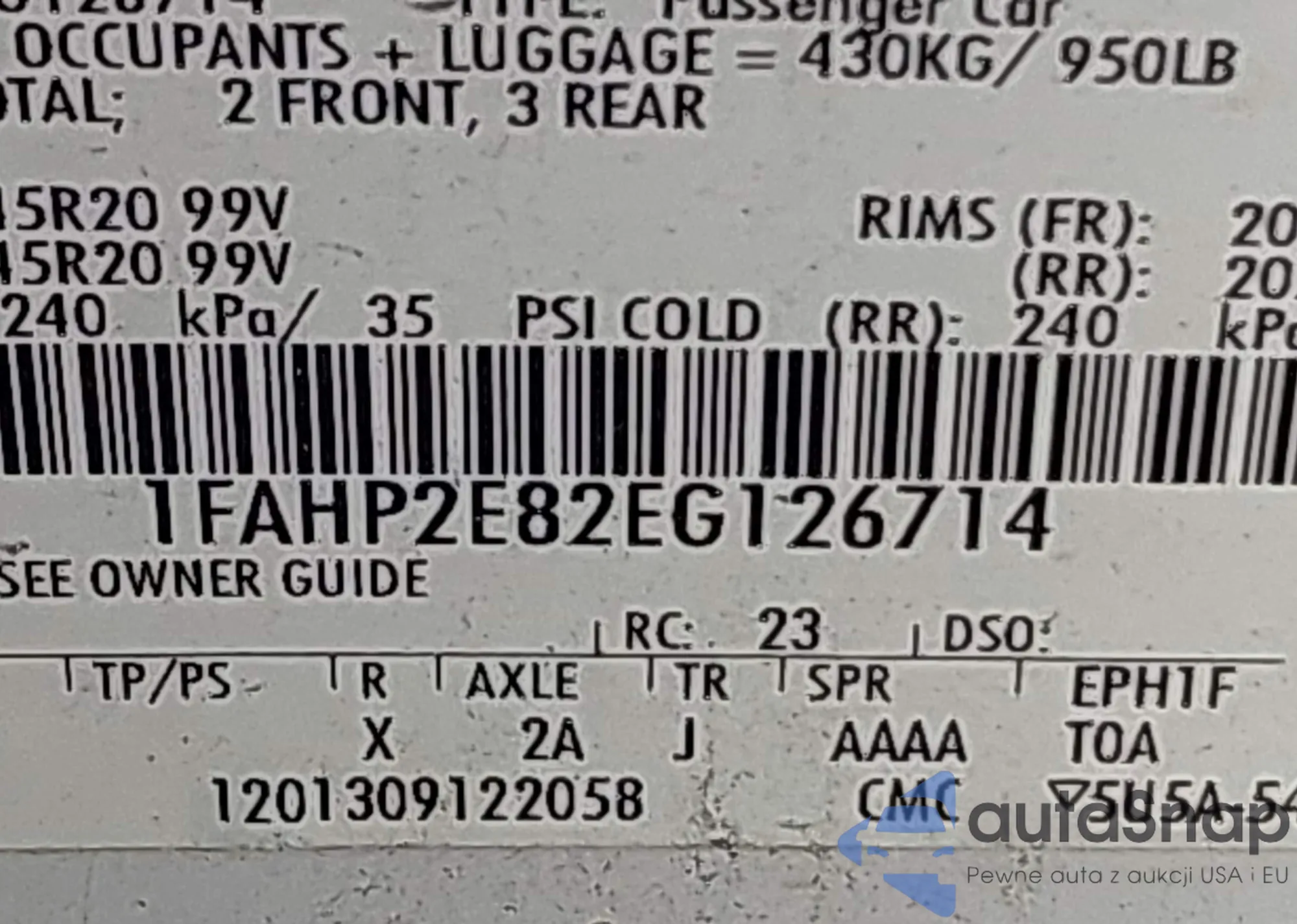 • VIN 1FAHP2E82EG126714