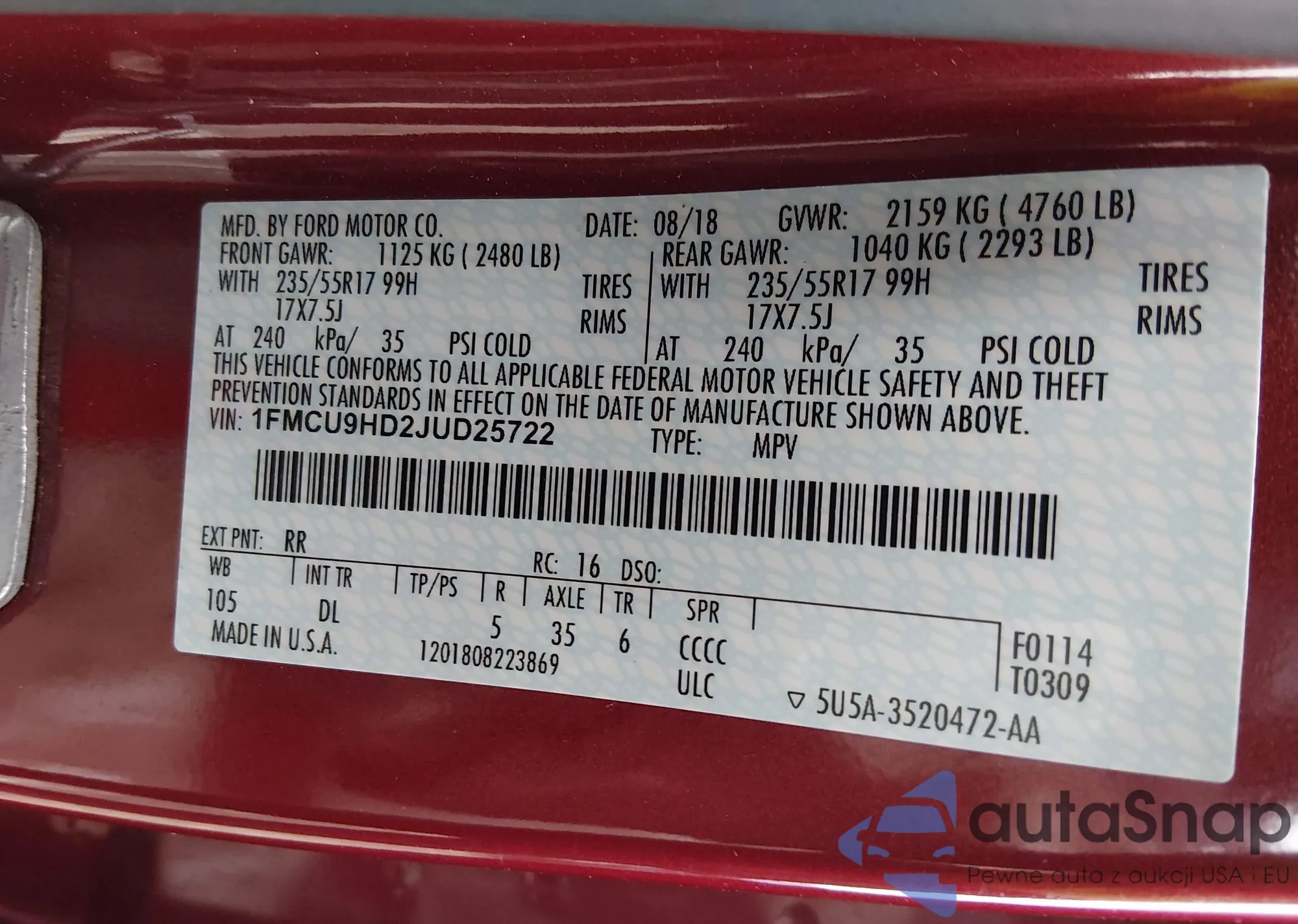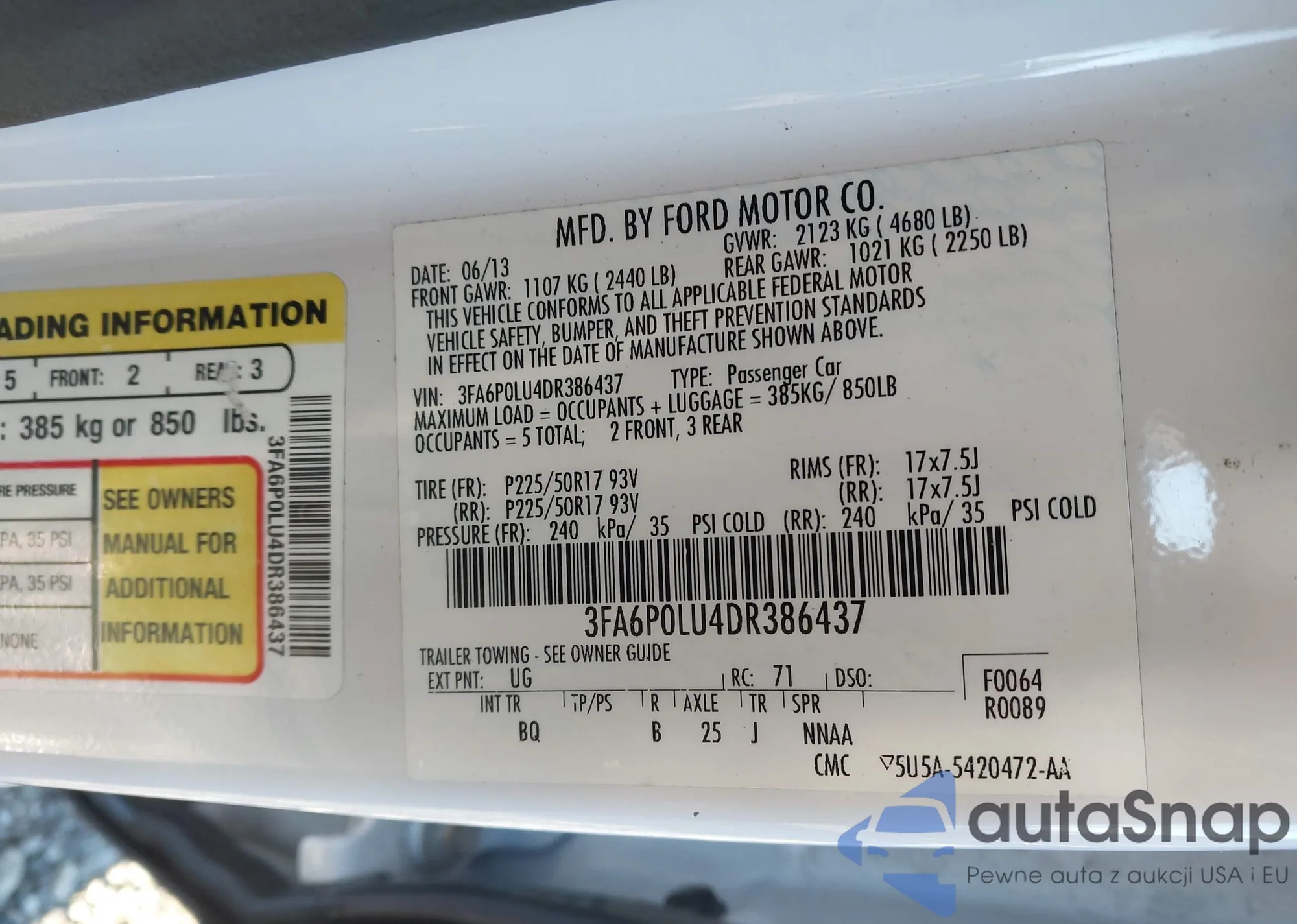 • VIN 3FA6P0LU4DR386437