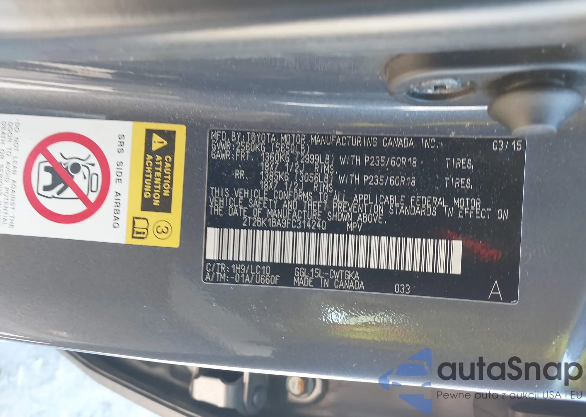 LOT: 44133999 VIN: JF2GTHSC8MH315259