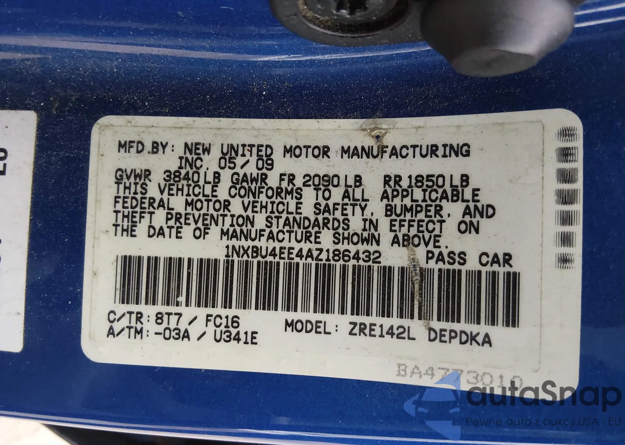 LOT: 44294012 VIN: 1NXBU4EE4AZ186432