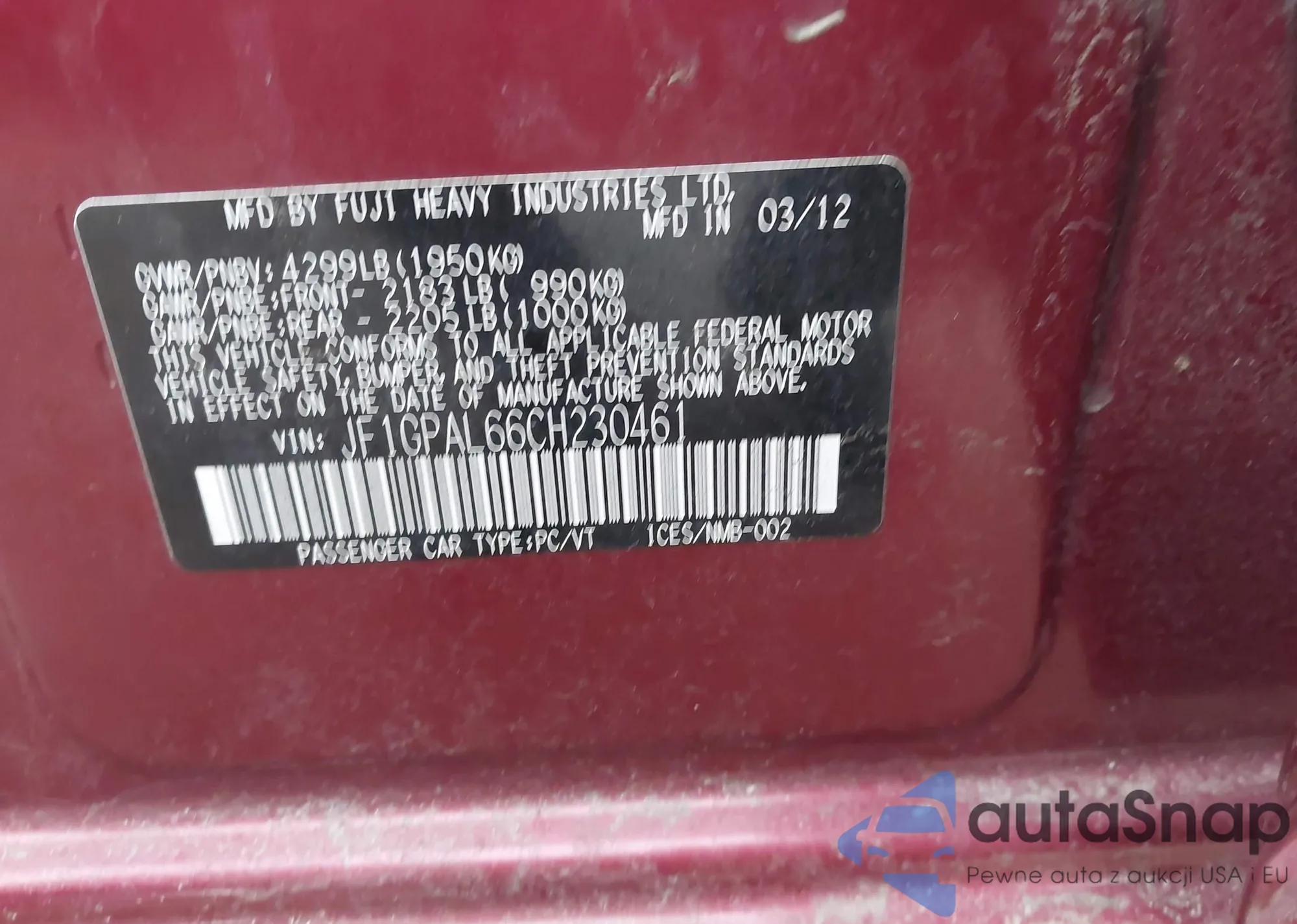 • VIN JF1GPAL66CH230461
