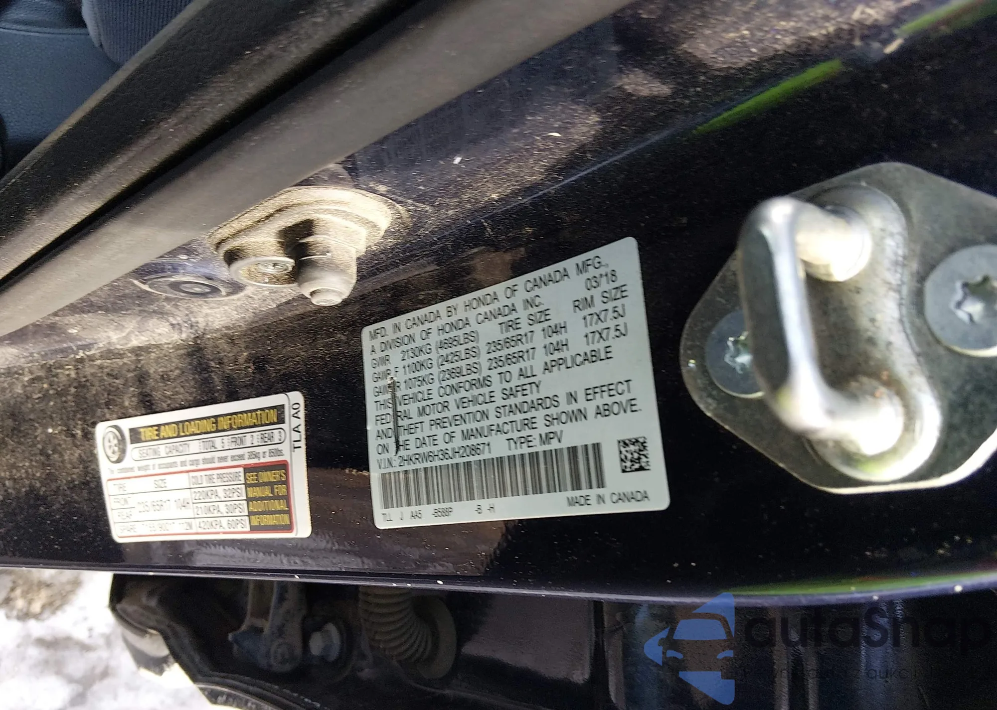 • VIN 2HKRW6H36JH208671