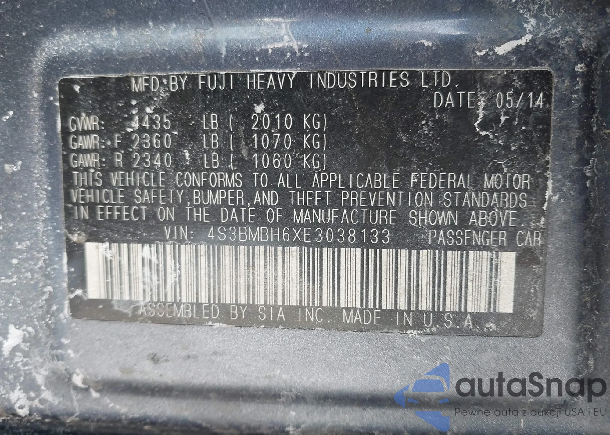 • VIN 4S3BMBH6XE3038133