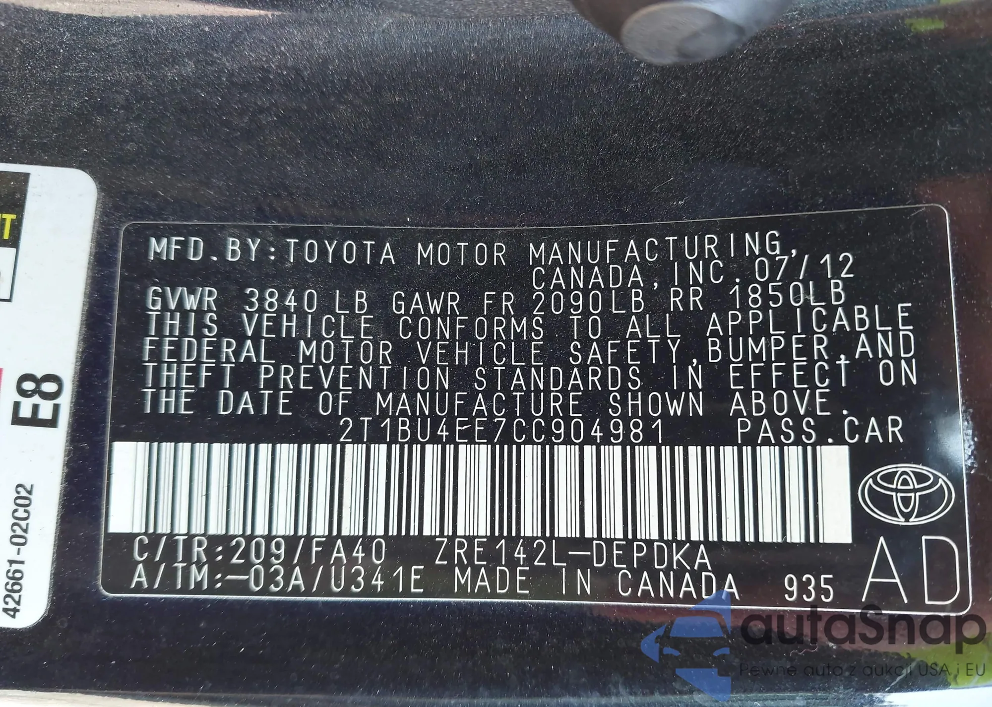 • VIN 2T1BU4EE7CC904981