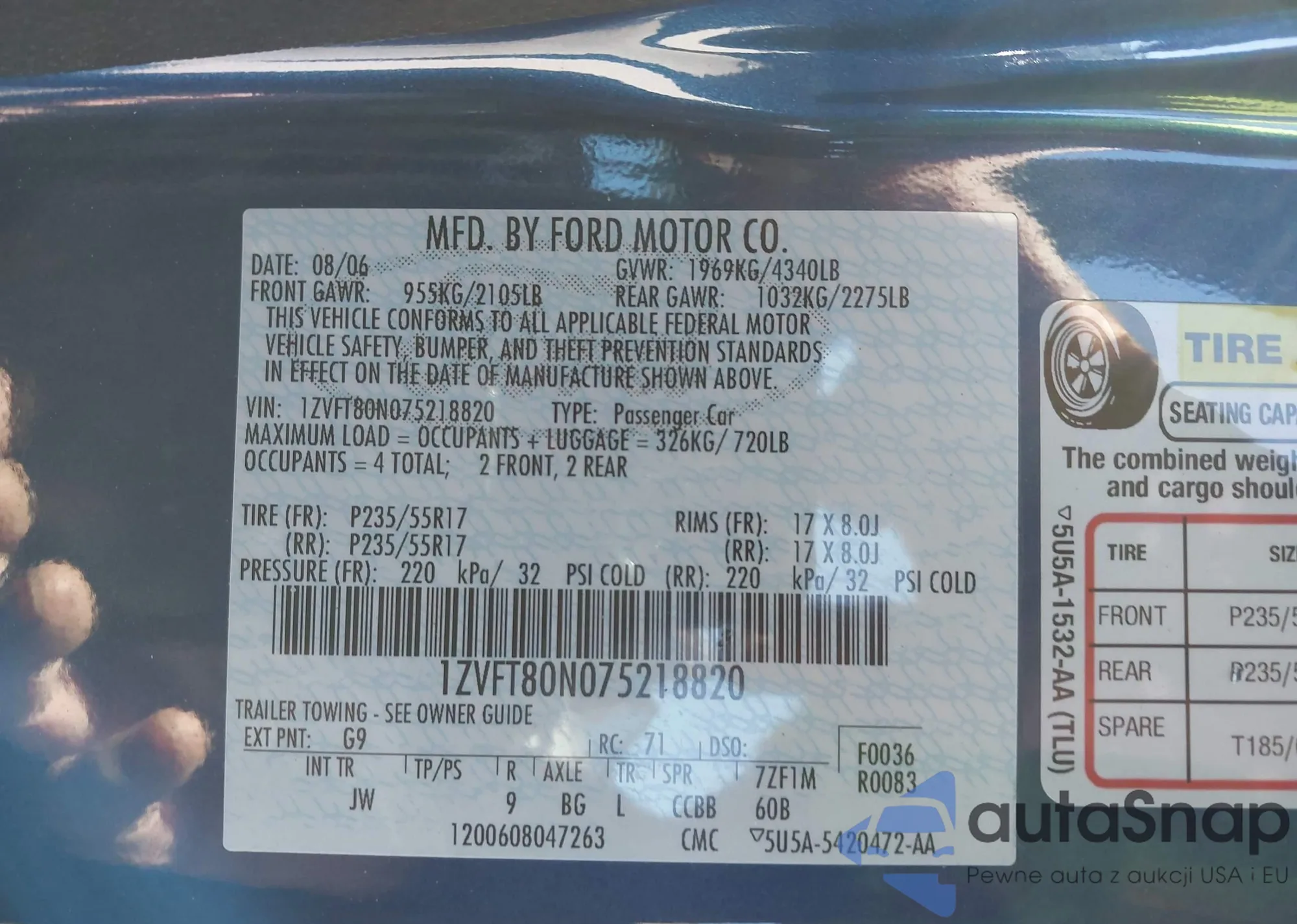 • VIN 1ZVFT80N075218820