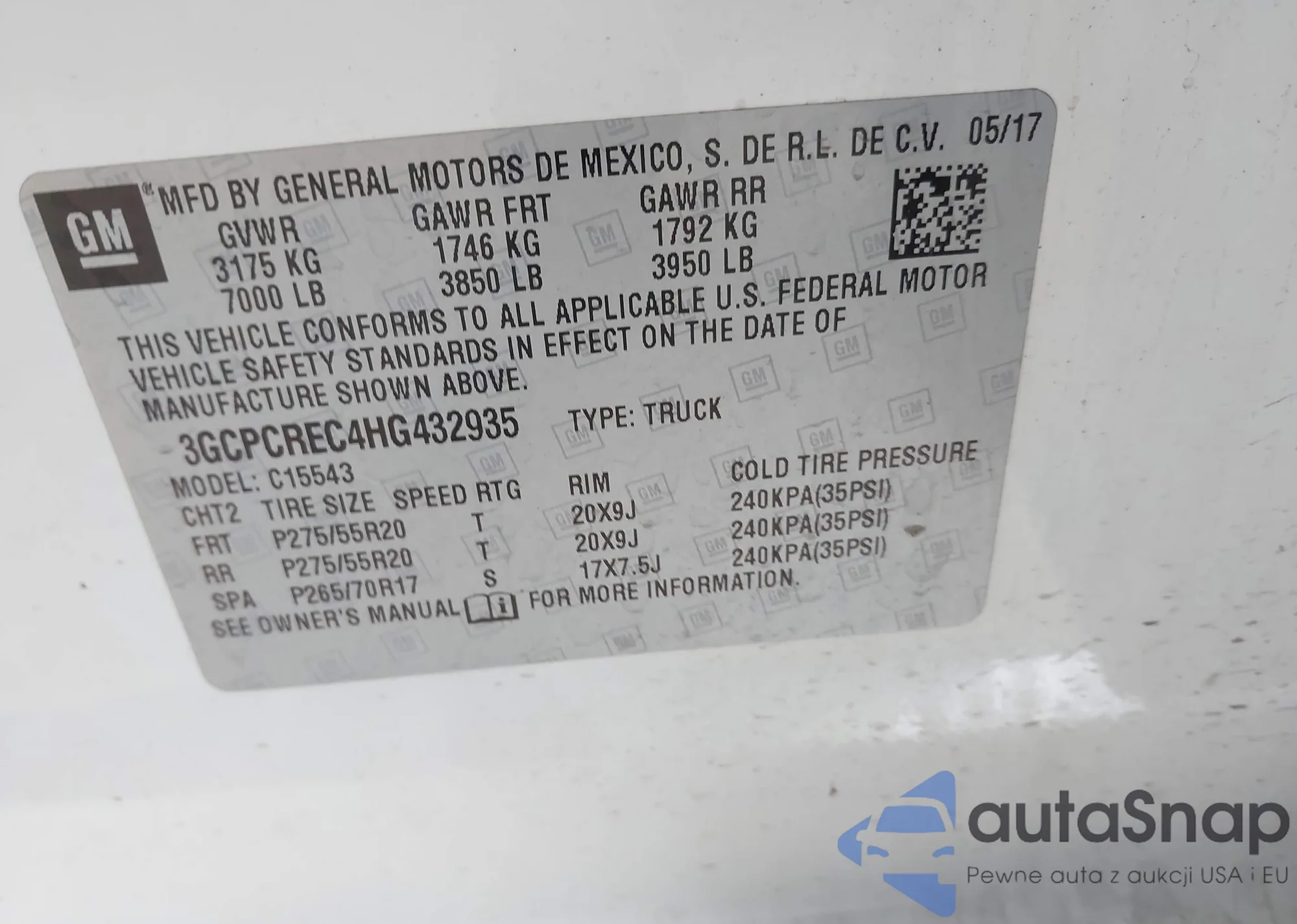 • VIN 3GCPCREC4HG432935