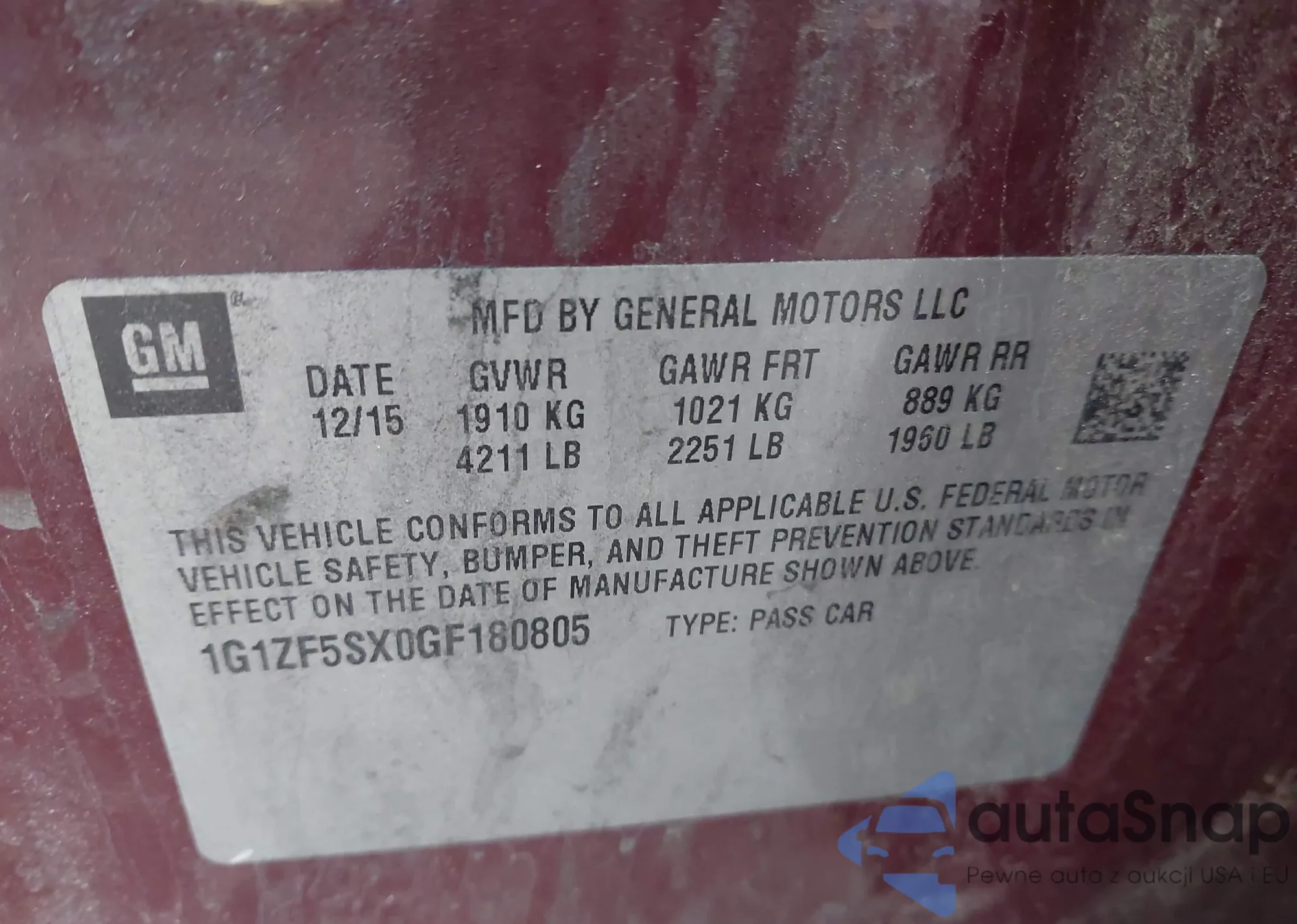 • VIN 1G1ZF5SX0GF180805