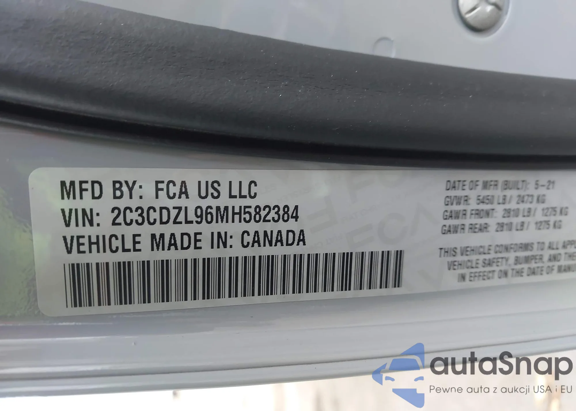 LOT: 43883095 VIN: 2C3CDZL96MH582384