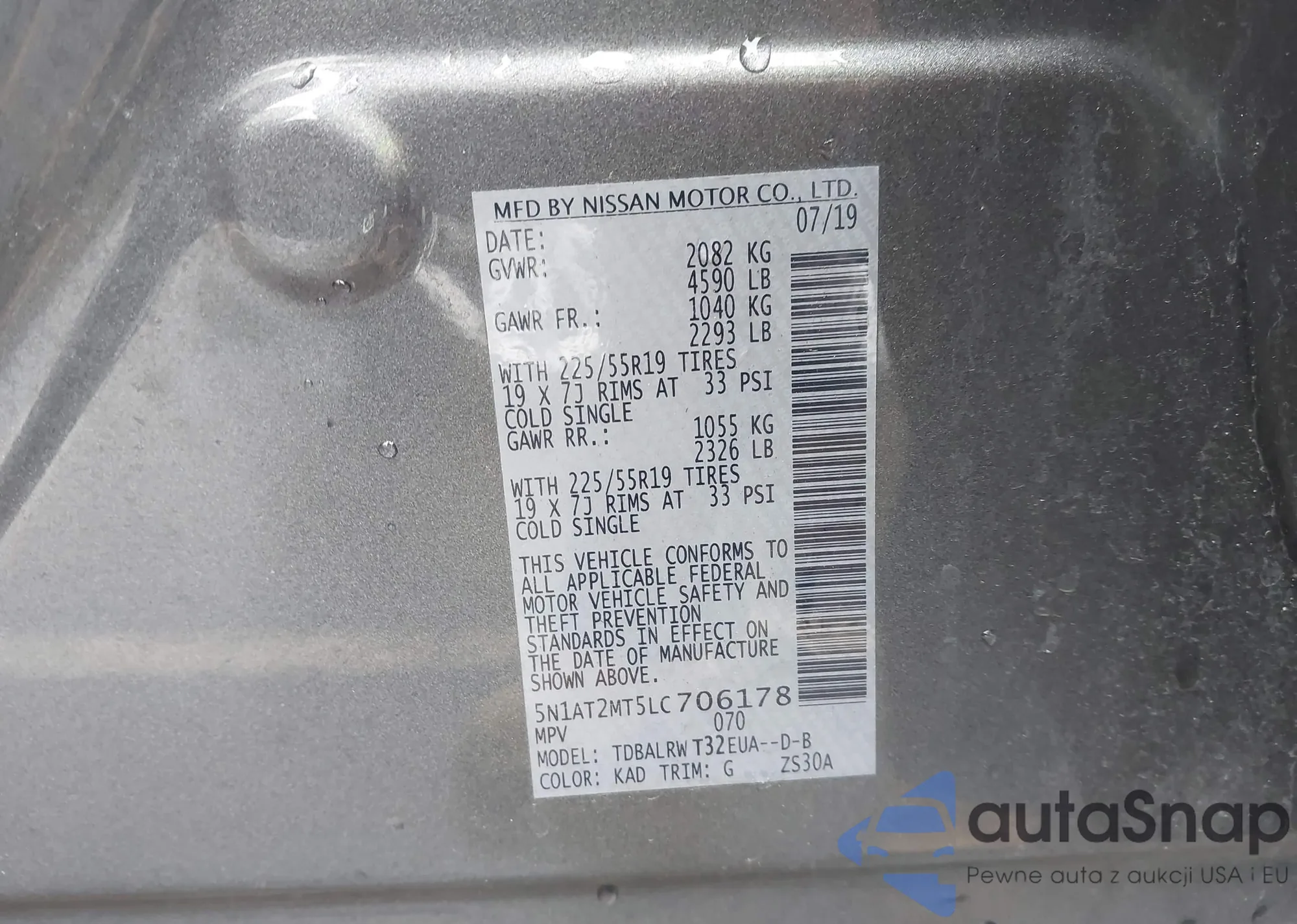 LOT: 43920103 VIN: 5N1AT2MT5LC706178