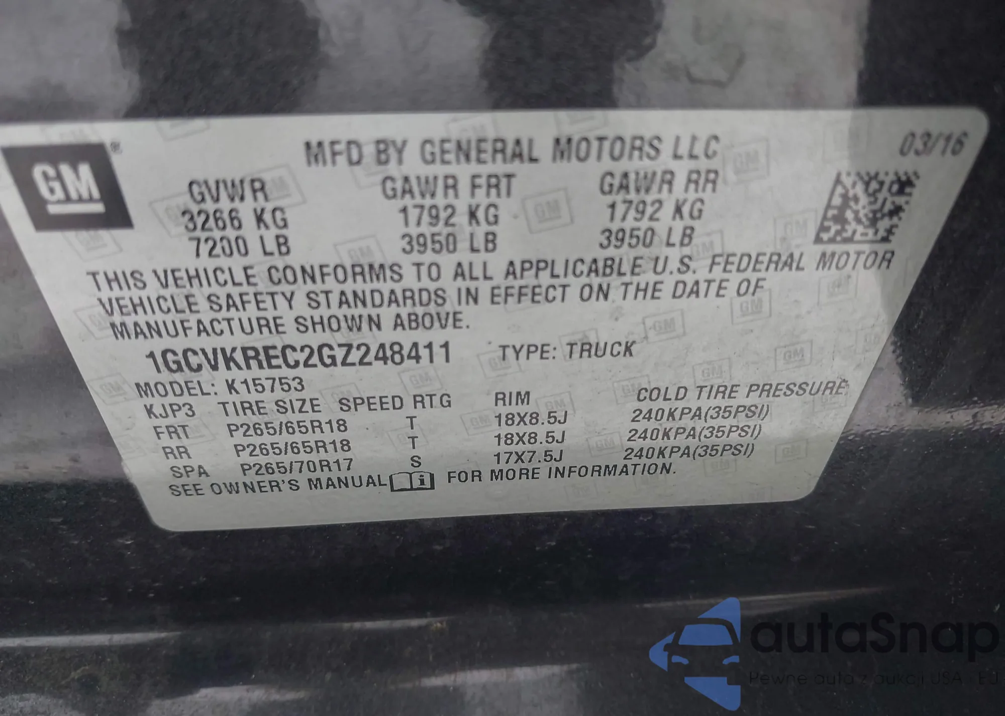 • VIN 1FTFW3LD2RFA73003