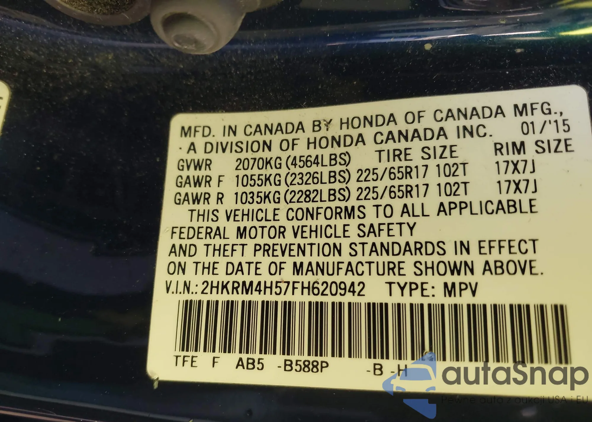 • VIN 2HKRM4H57FH620942