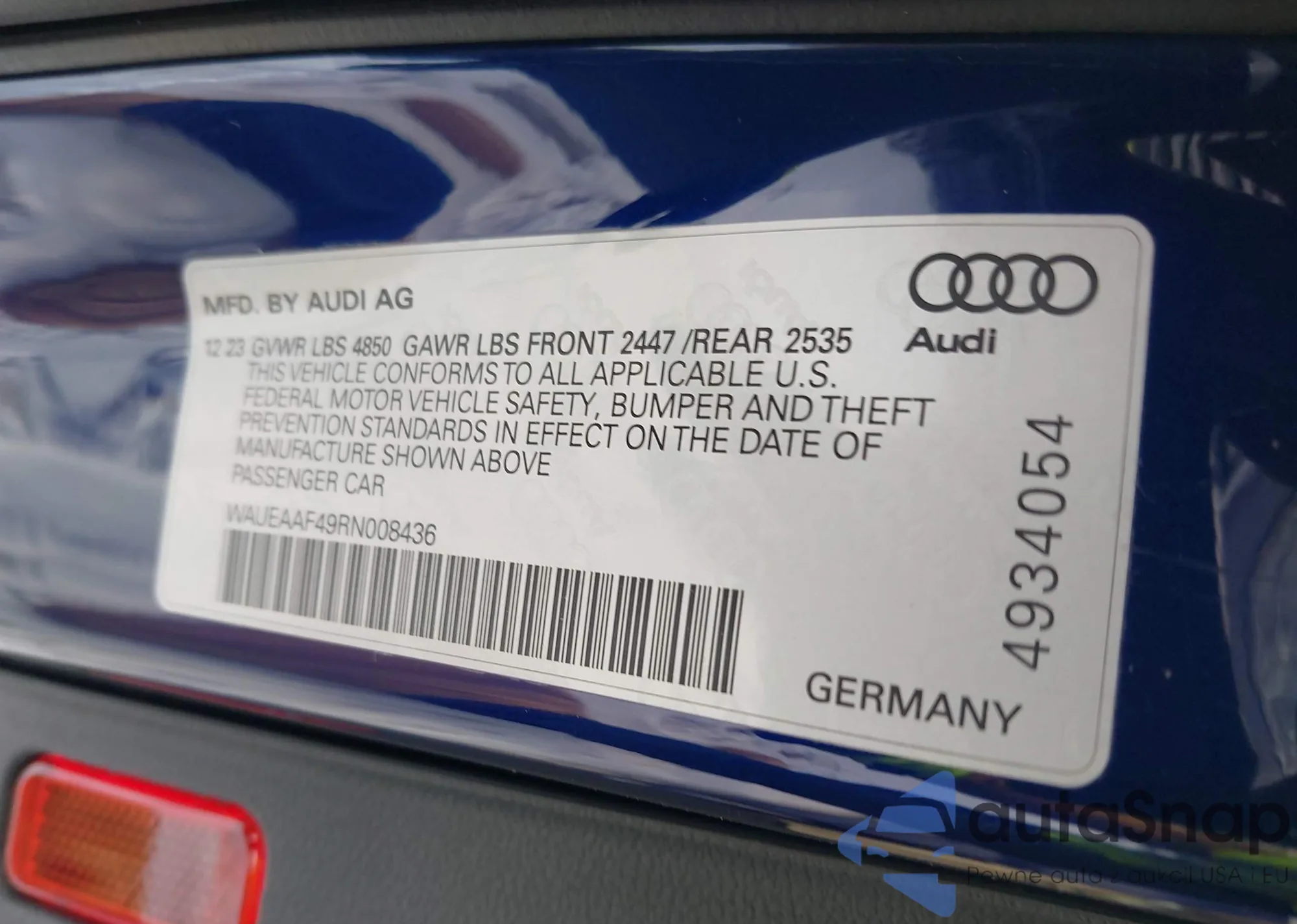 • VIN WAUEAAF49RN008436
