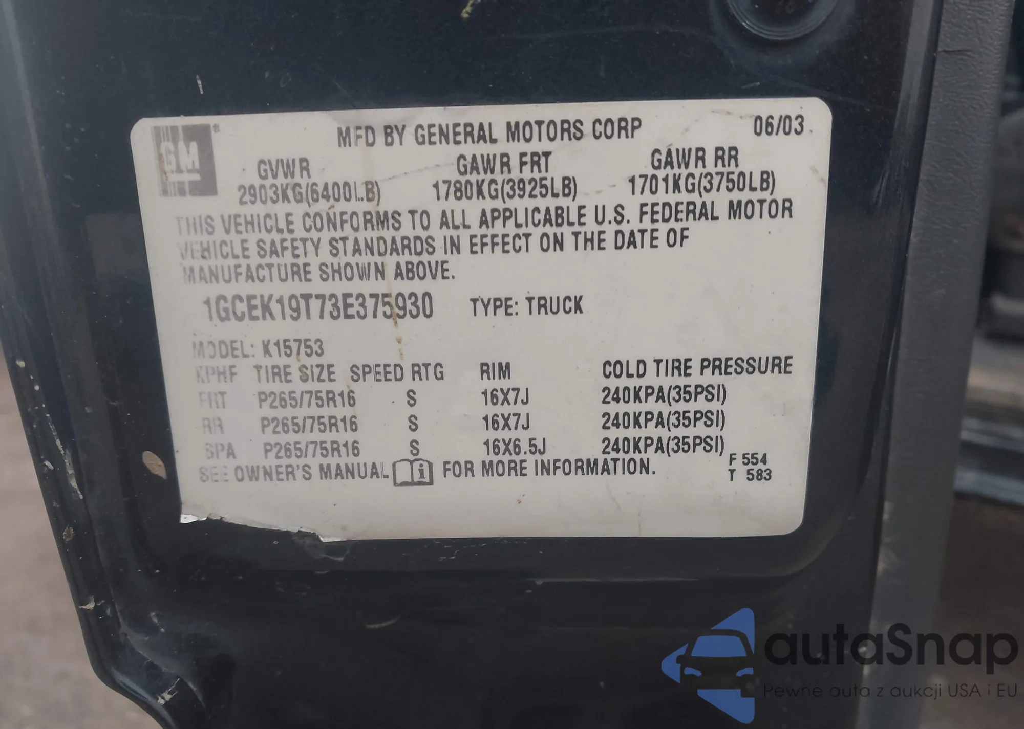 • VIN SALSK2D43BA297928