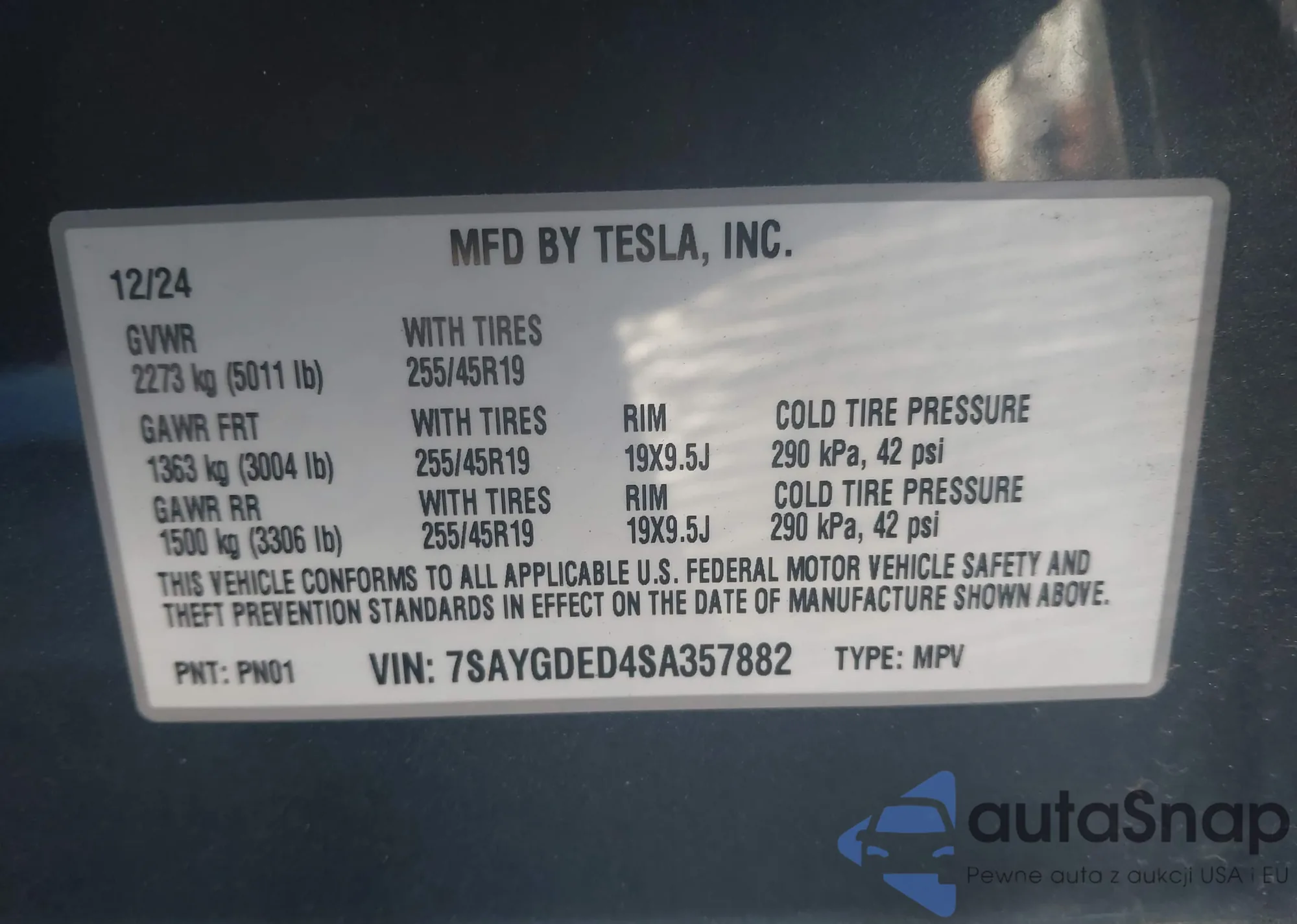 • VIN 7SAYGDED4SA357882
