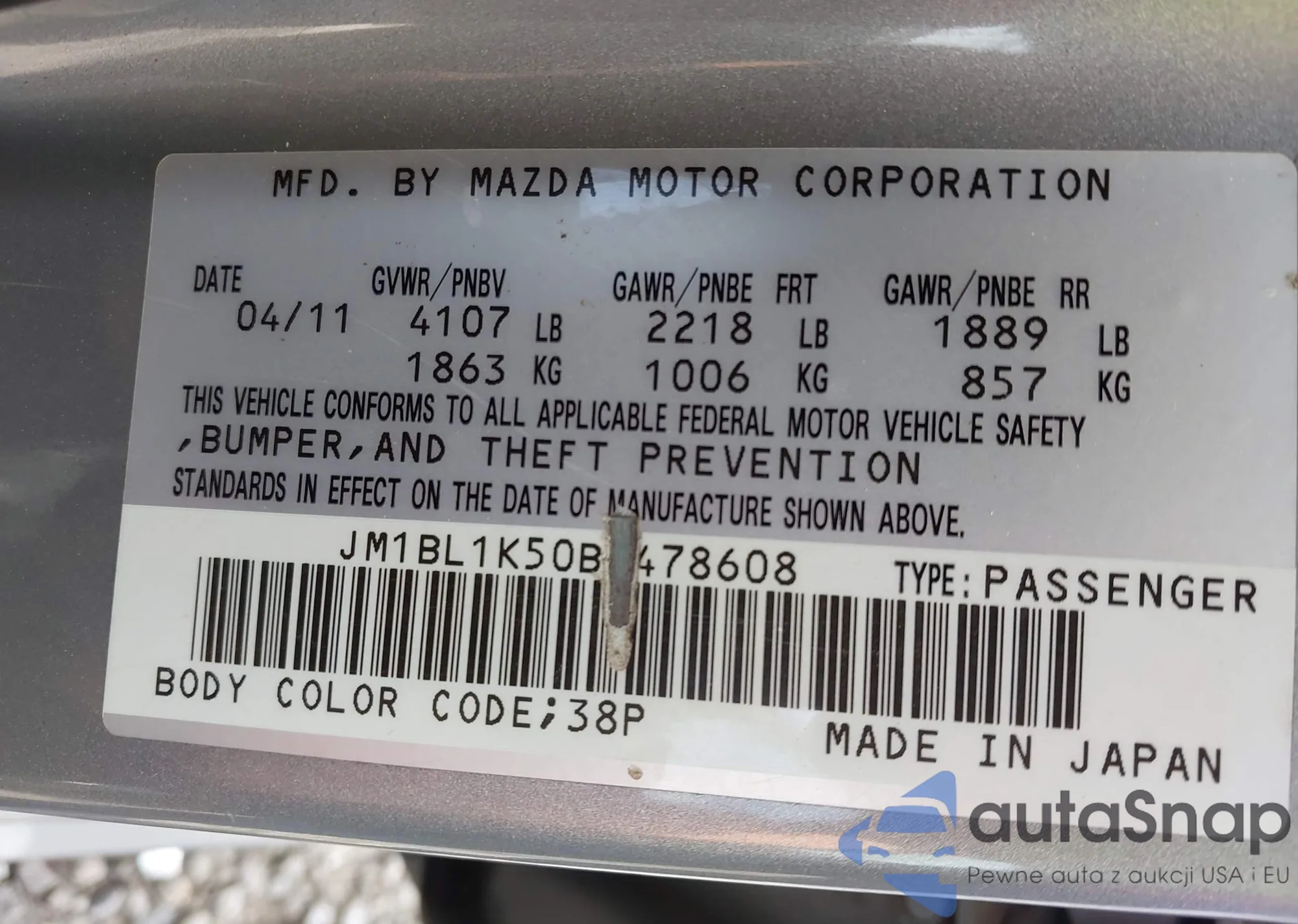 LOT: 44102081 VIN: 2FABP7BV6BX149366