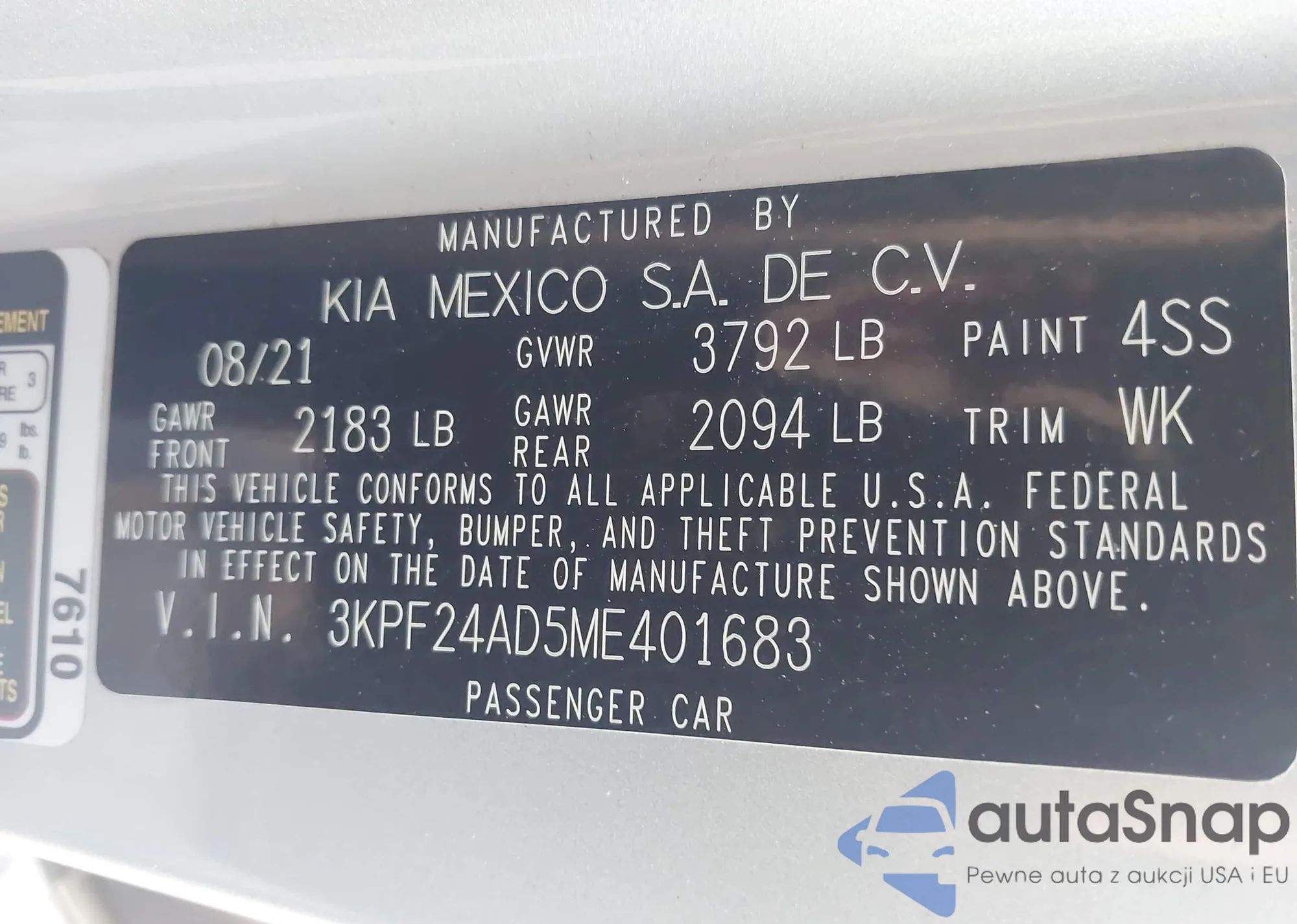 • VIN 3KPF24AD5ME401683