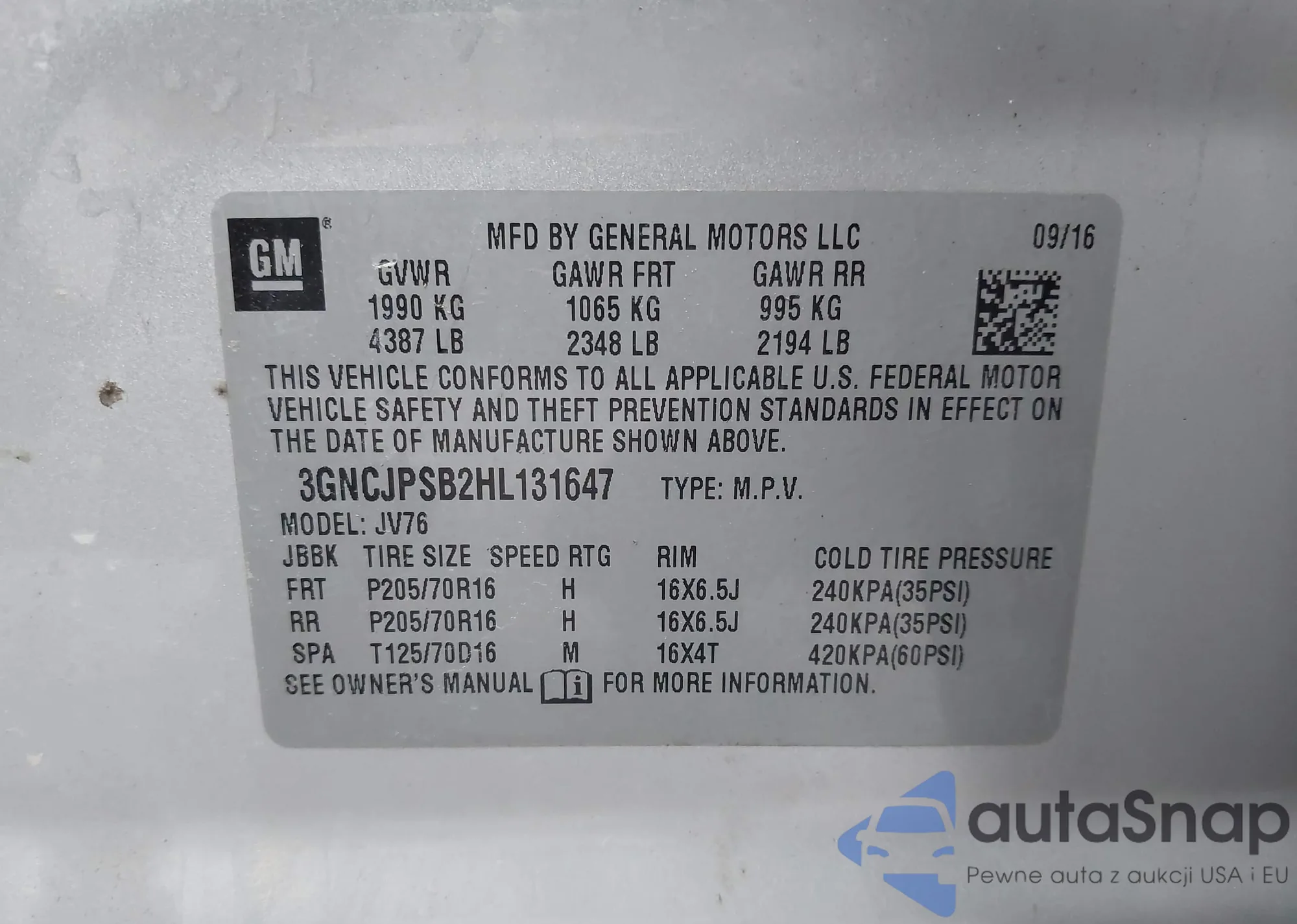 • VIN 3GNCJPSB2HL131647
