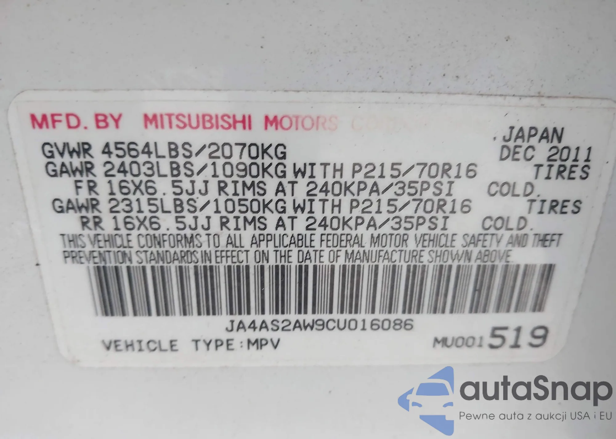 LOT: 44092447 VIN: JA4LZ41G43U042491