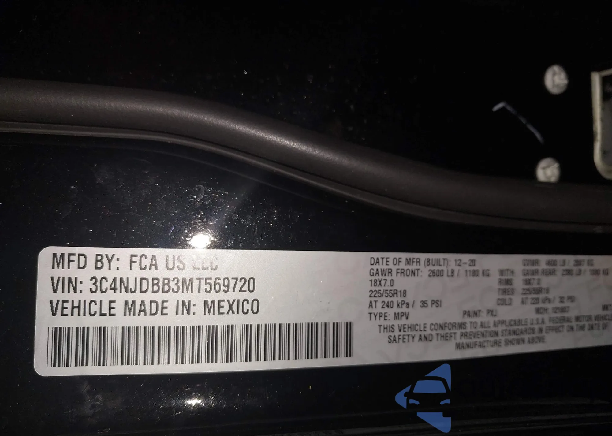 • VIN 3C4NJDBB3MT569720