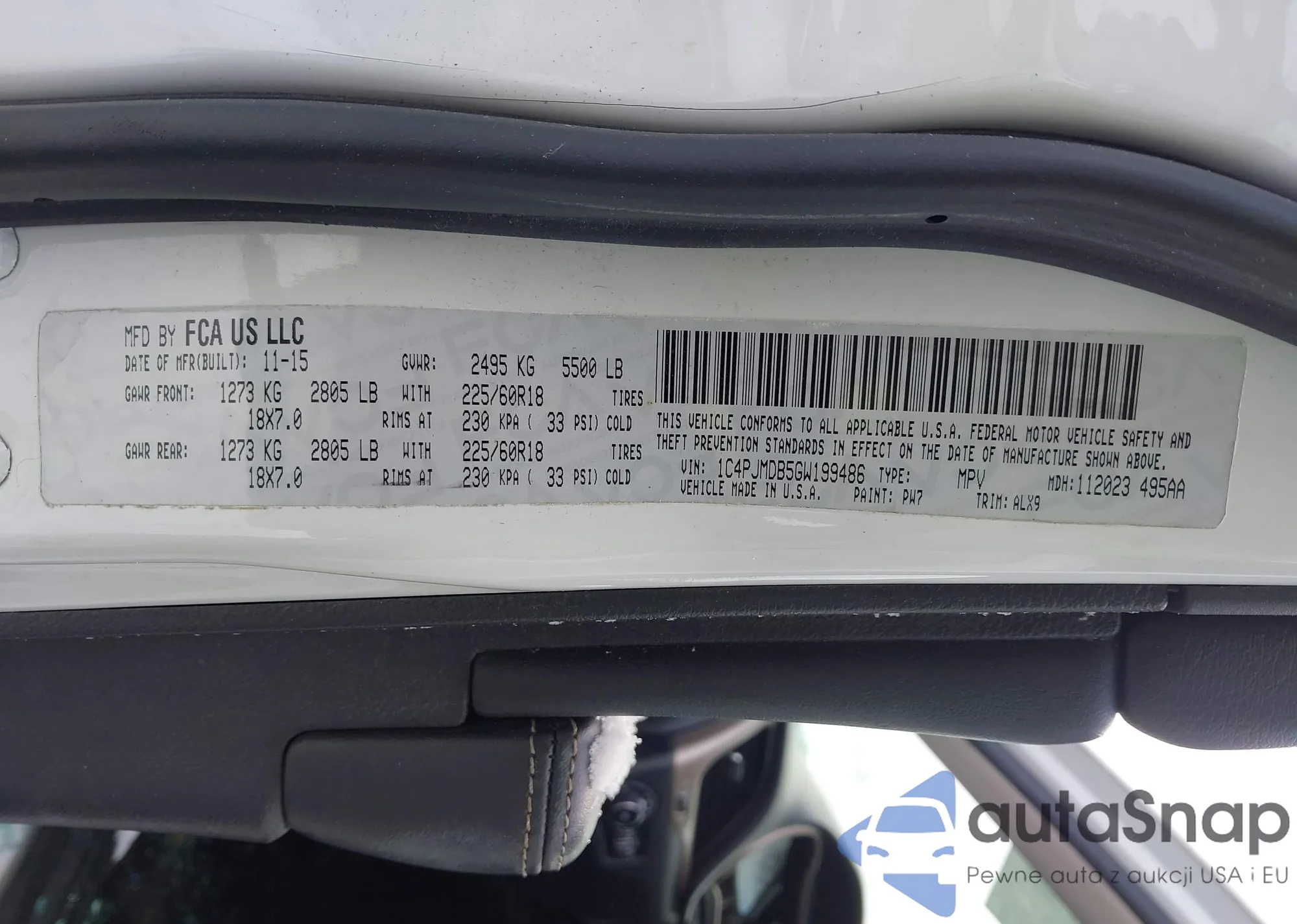 LOT: 43990228 VIN: 1C4PJLAB8GW324012