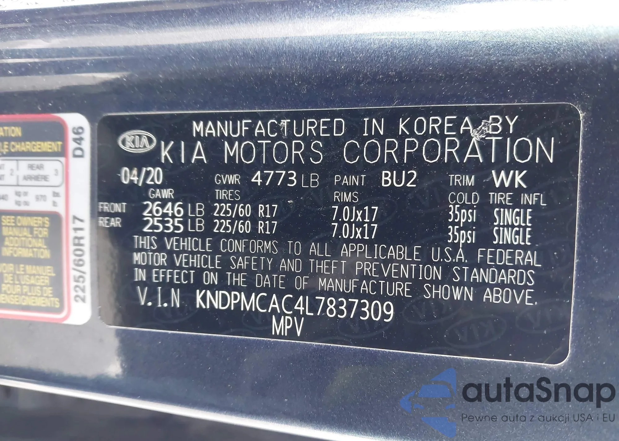 LOT: 44021285 VIN: KNAE35LDXP6136925