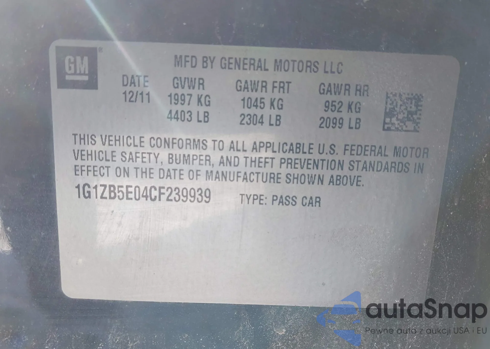 • VIN 1G1ZB5E04CF239939