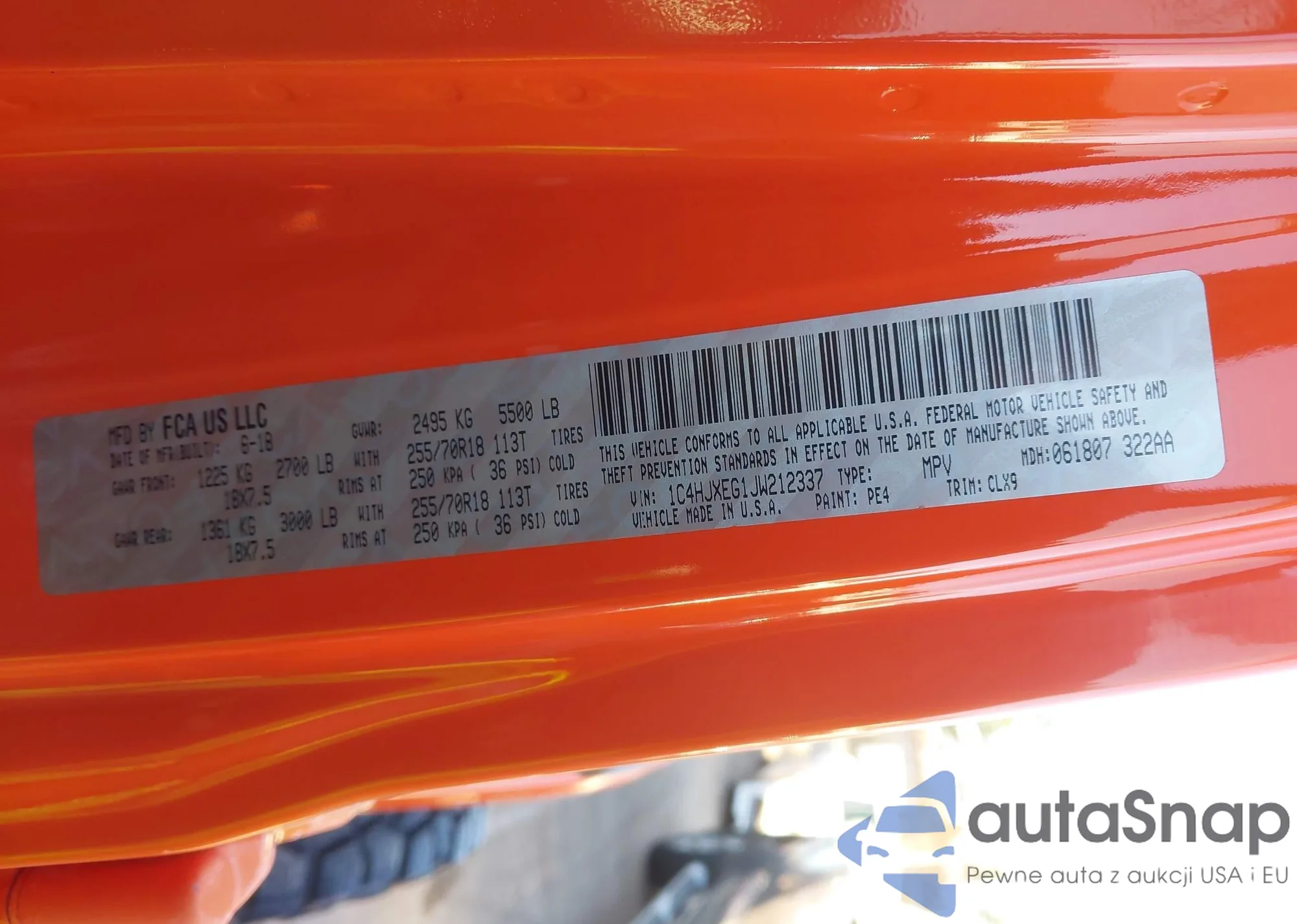 • VIN 1C4HJXEG1JW212337