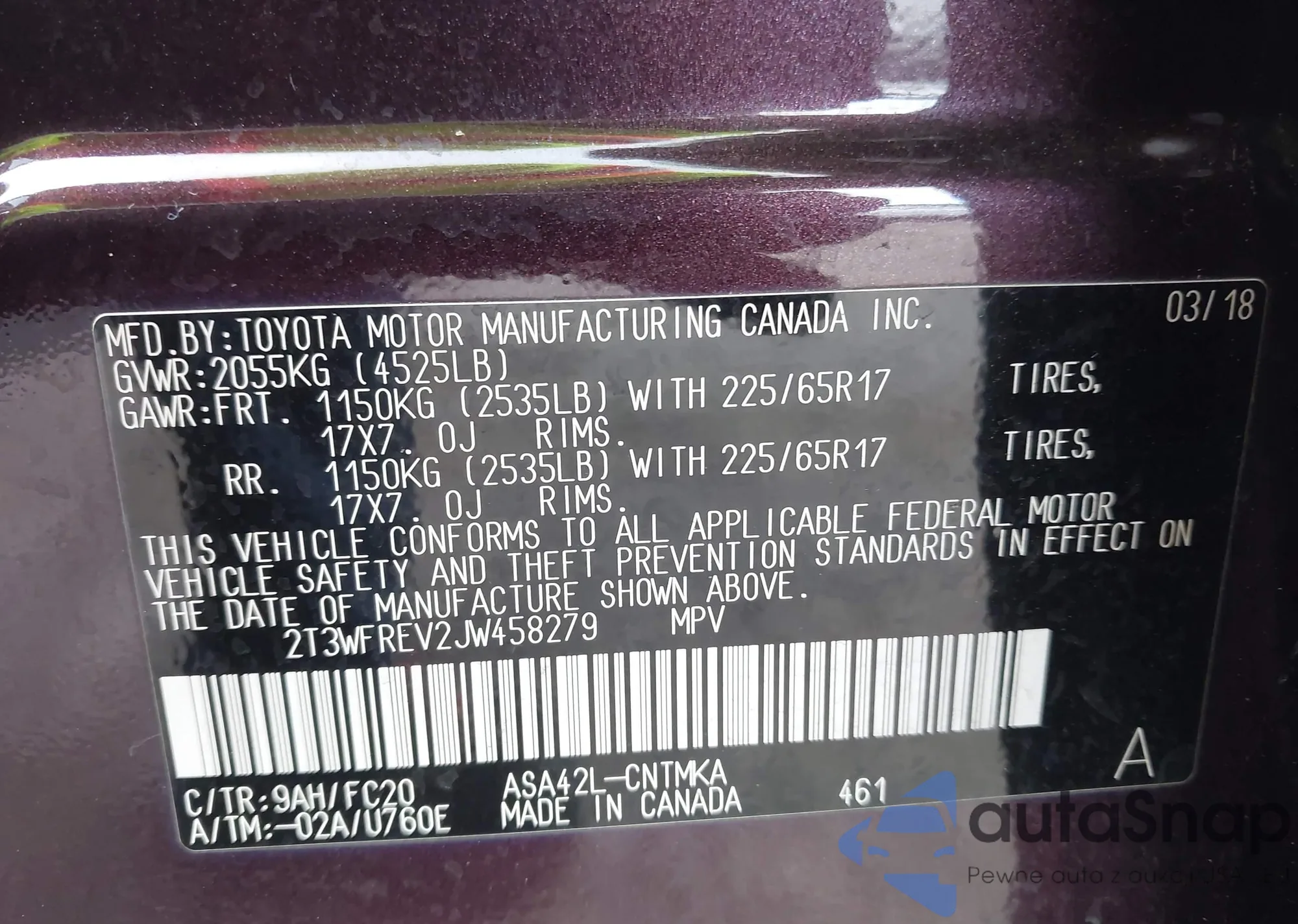 • VIN 2T3WFREV2JW458279