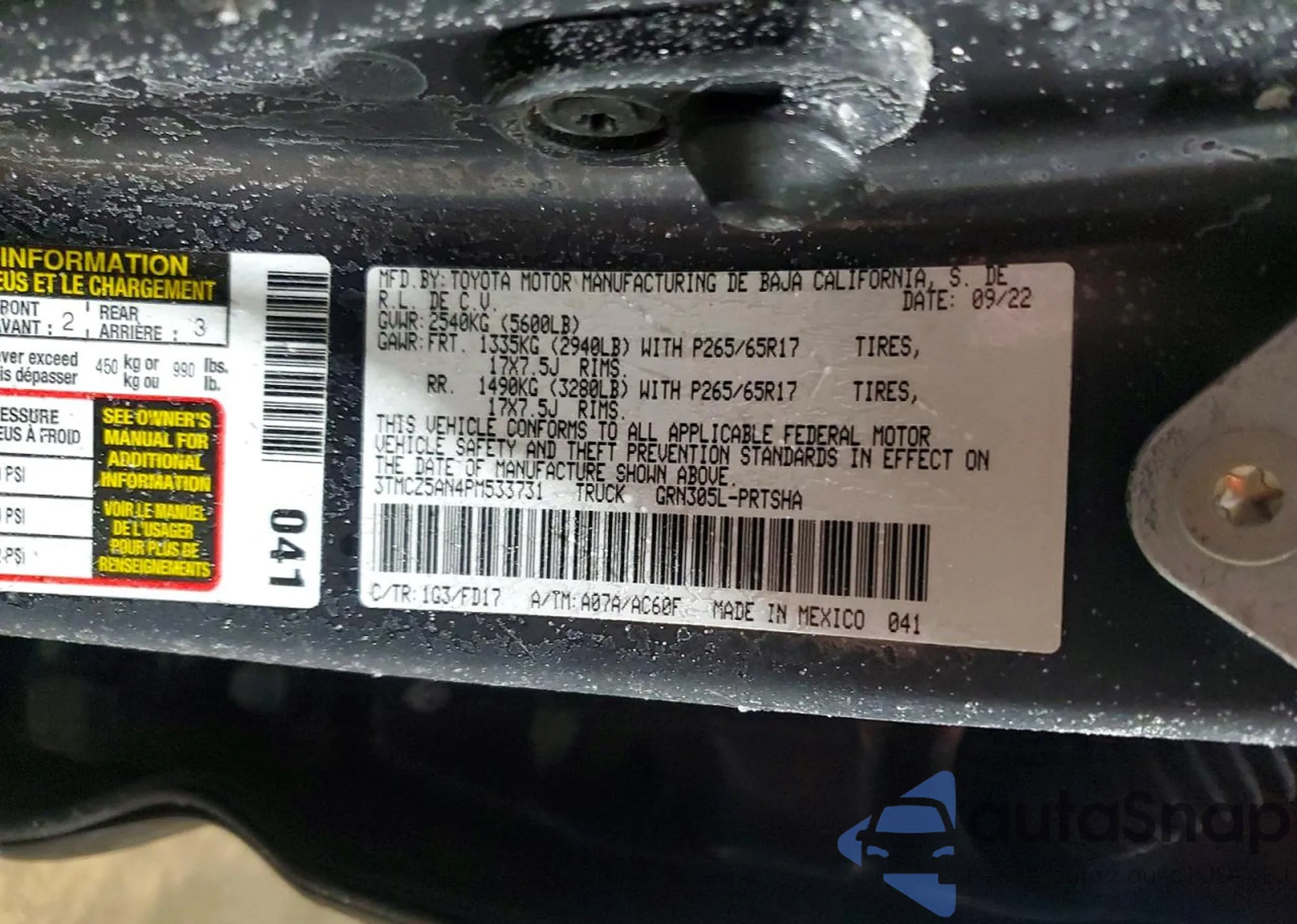 • VIN 3TMCZ5AN4PM533731
