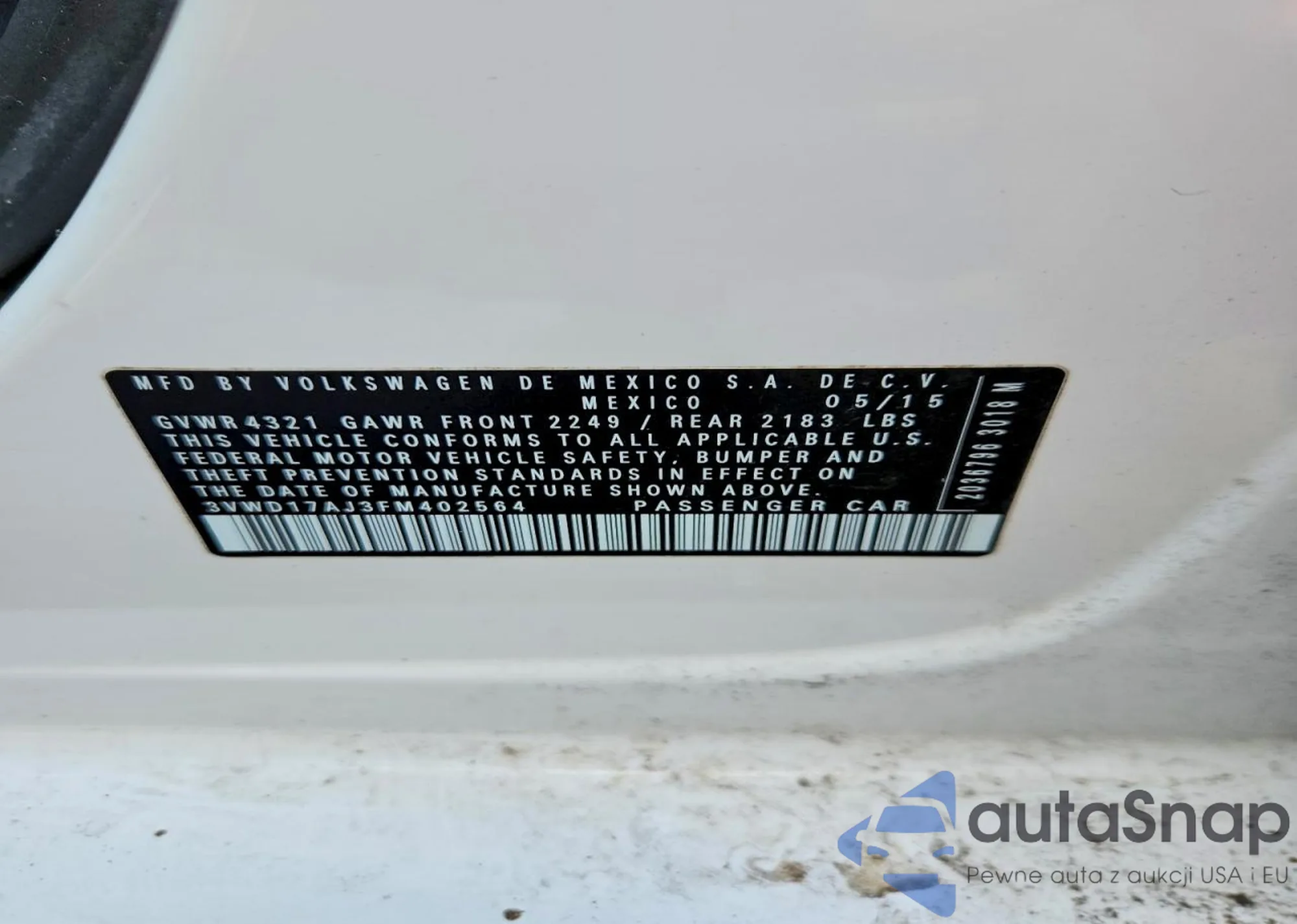 • VIN 3VWD17AJ3FM402564