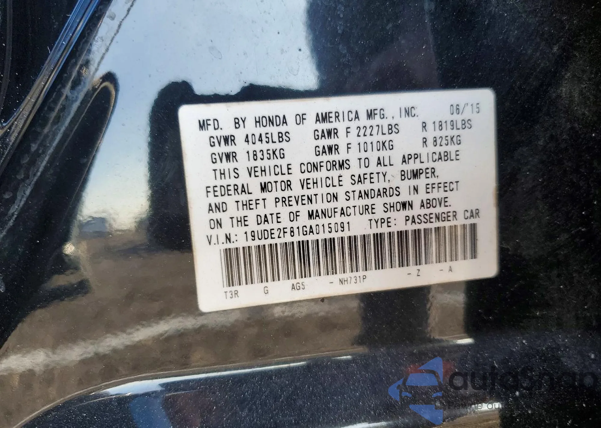 • VIN 19UDE2F81GA015091
