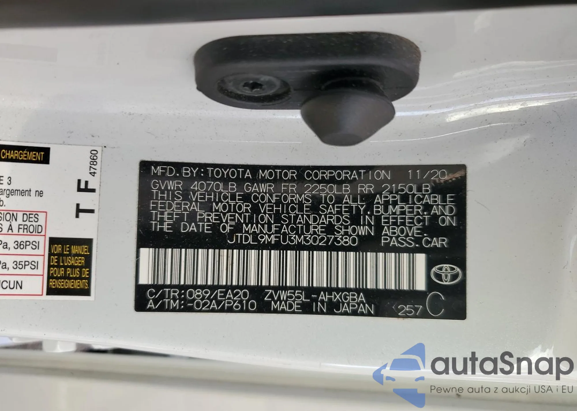 LOT: 92494265 VIN: JTDL9MFU3M3027380