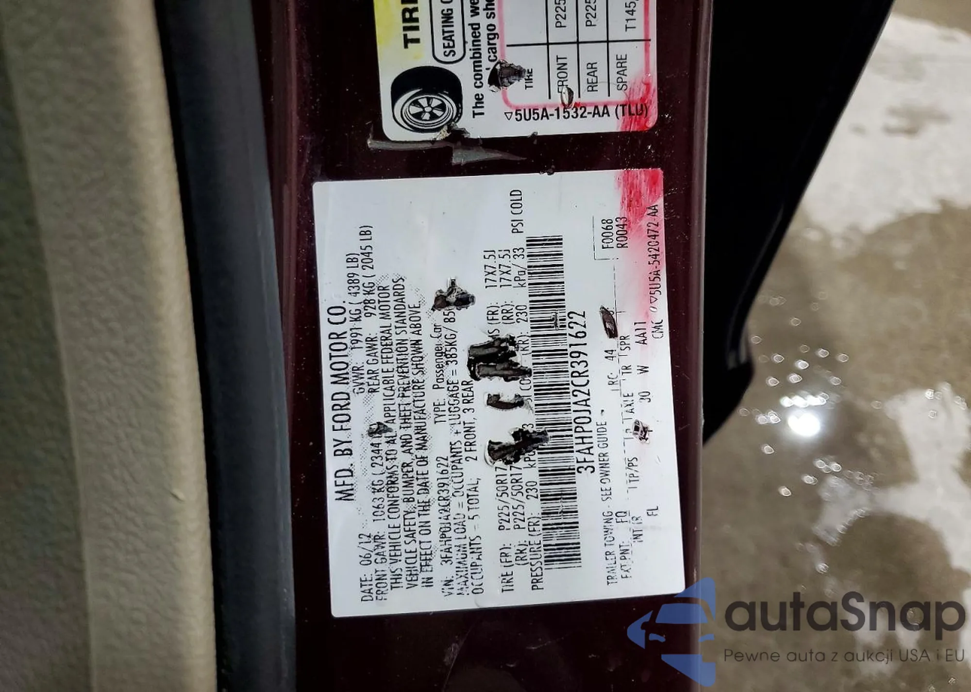 LOT: 99620045 VIN: 3FAHP0JA2CR391622