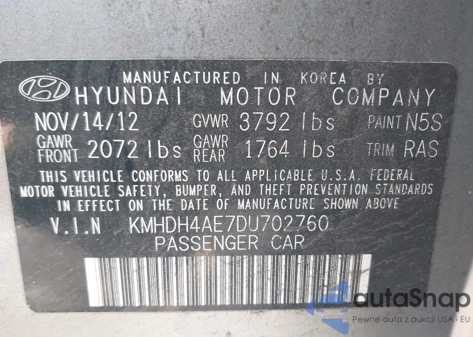 • VIN KMHDH4AE7DU702760