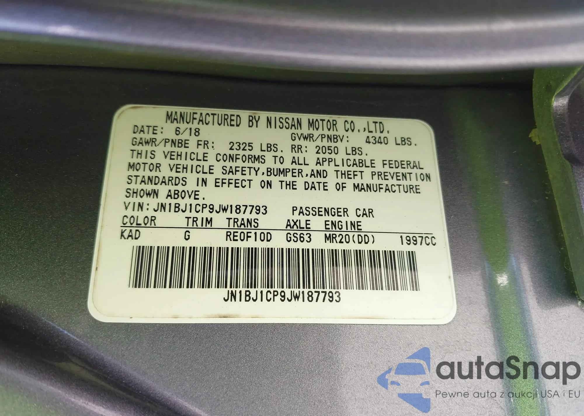 LOT: 43760551 VIN: JN1BJ1CP9JW187793
