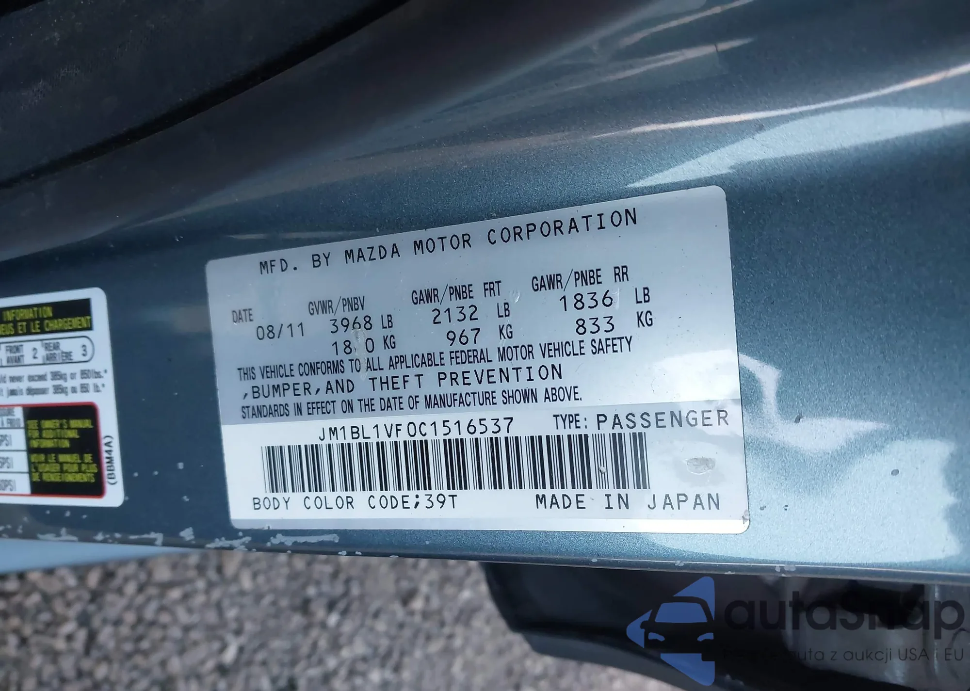 LOT: 43861795 VIN: JF1VBAF61P9820973