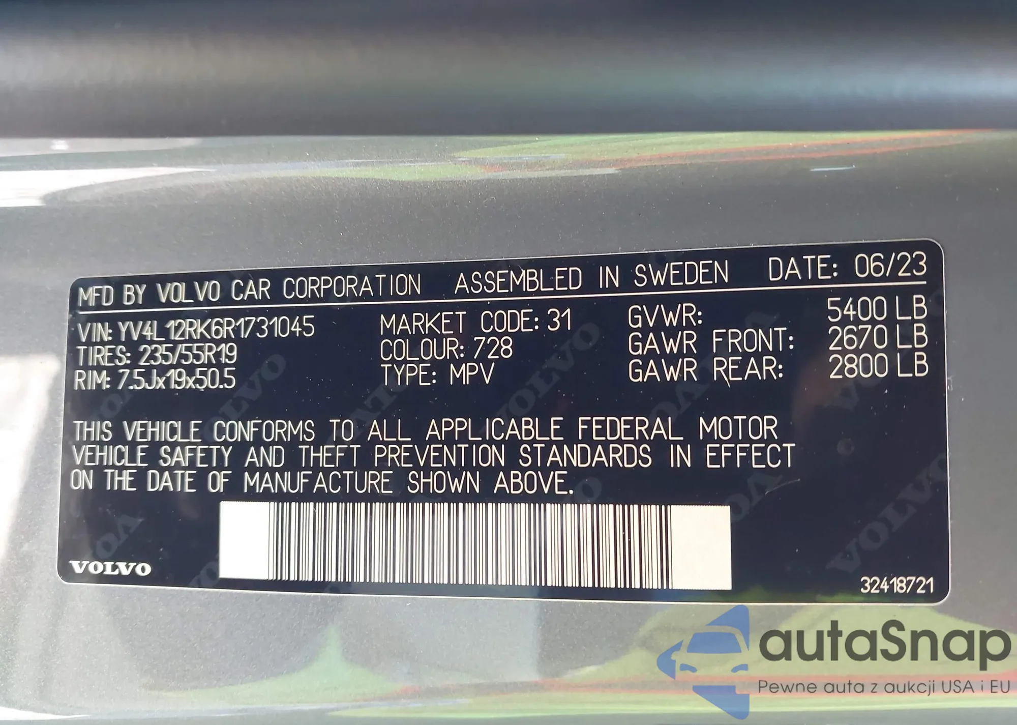 • VIN YV4L12RK6R1731045