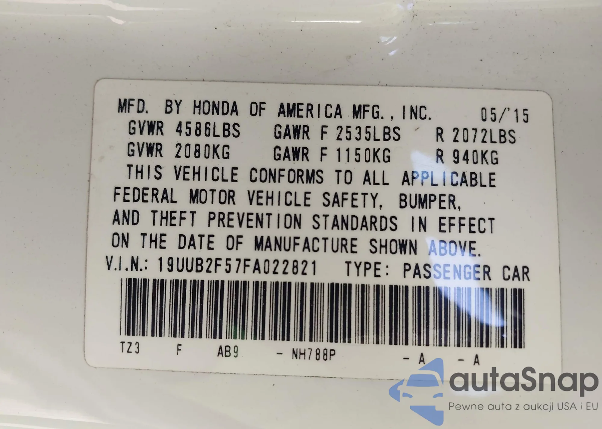 • VIN 19UUB2F57FA022821