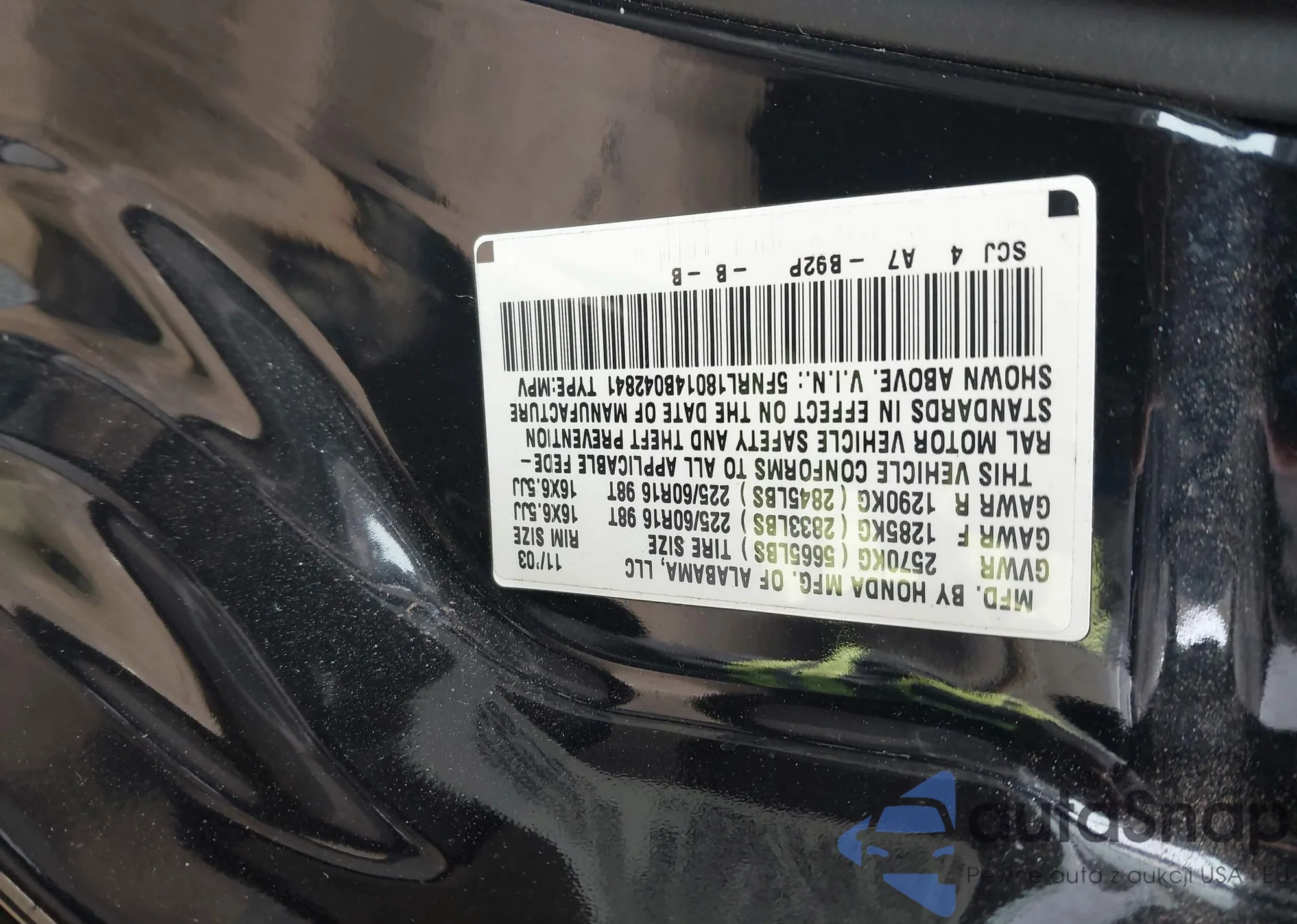 LOT: 44253876 VIN: 5FNRL18014B042841