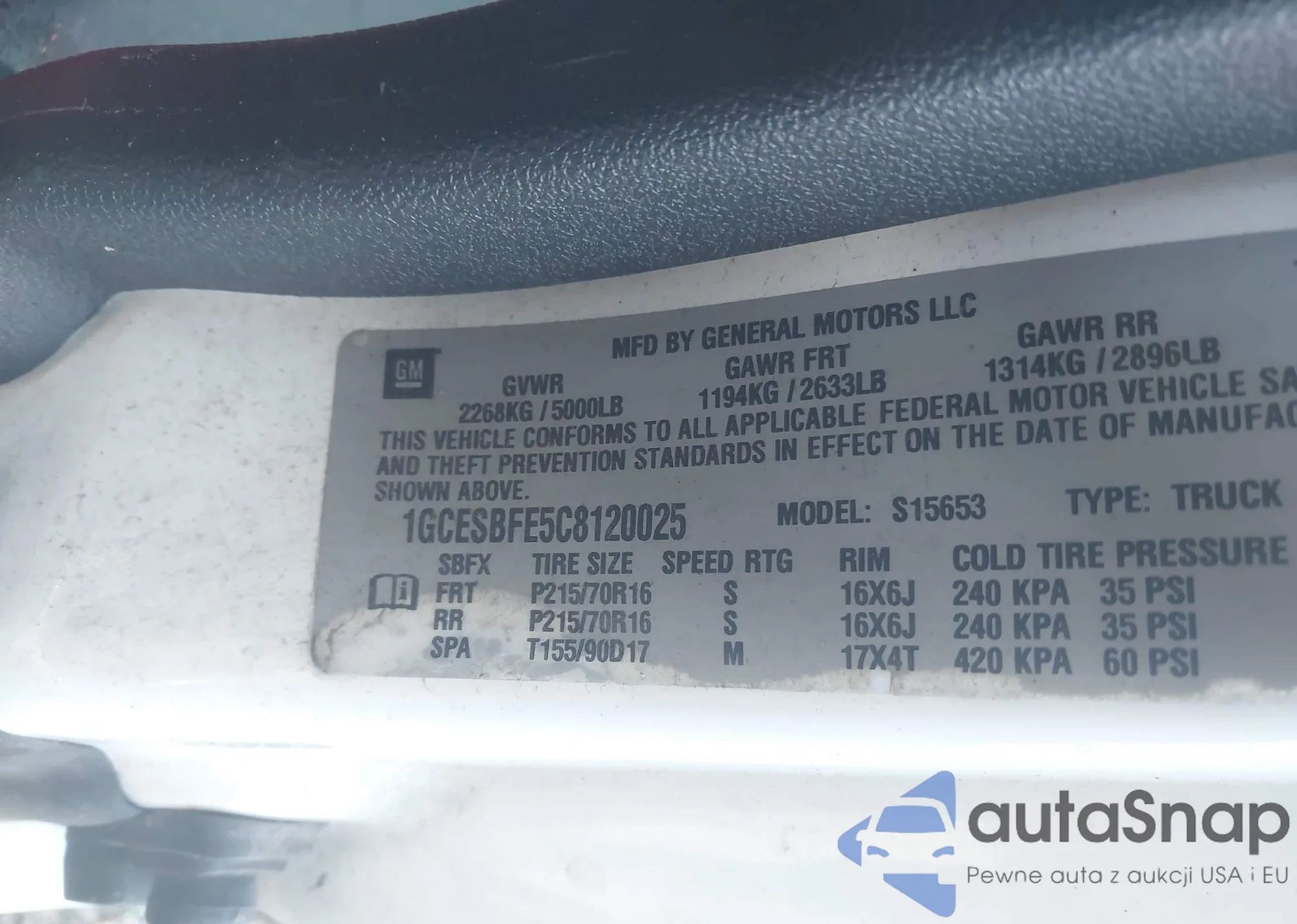 • VIN 1GCESBFE5C8120025