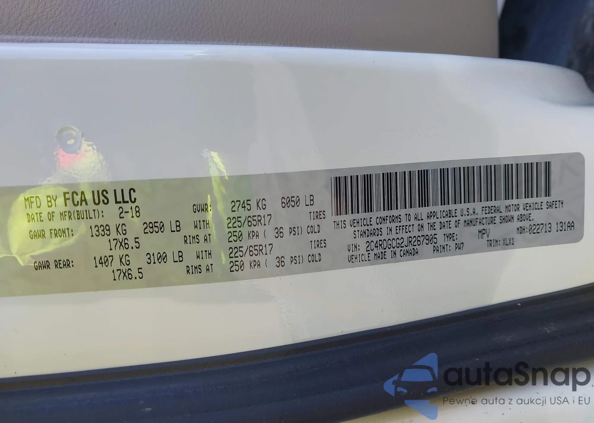 • VIN 2C4RDGCG2JR267905