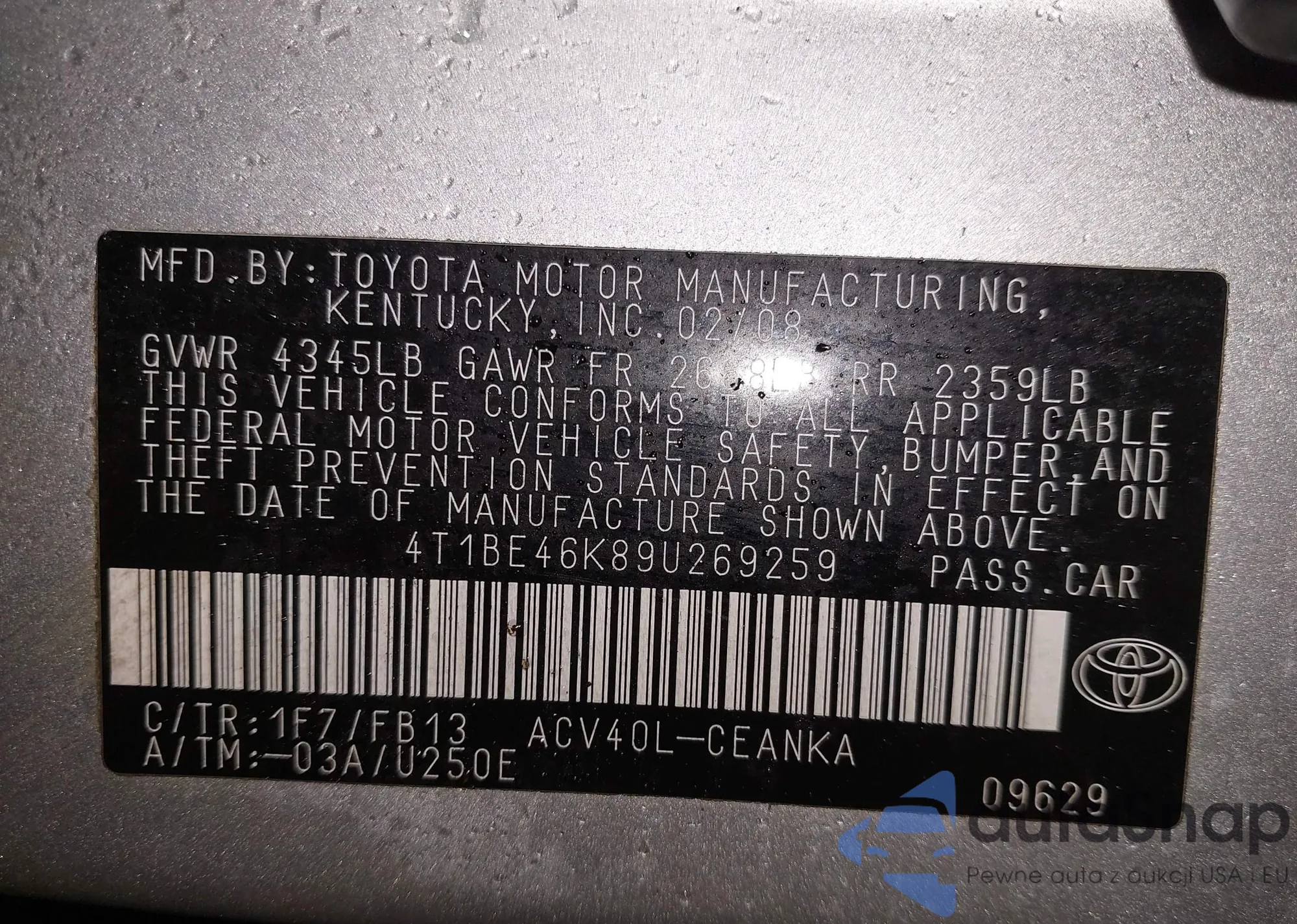 • VIN 4T1BE46K89U269259