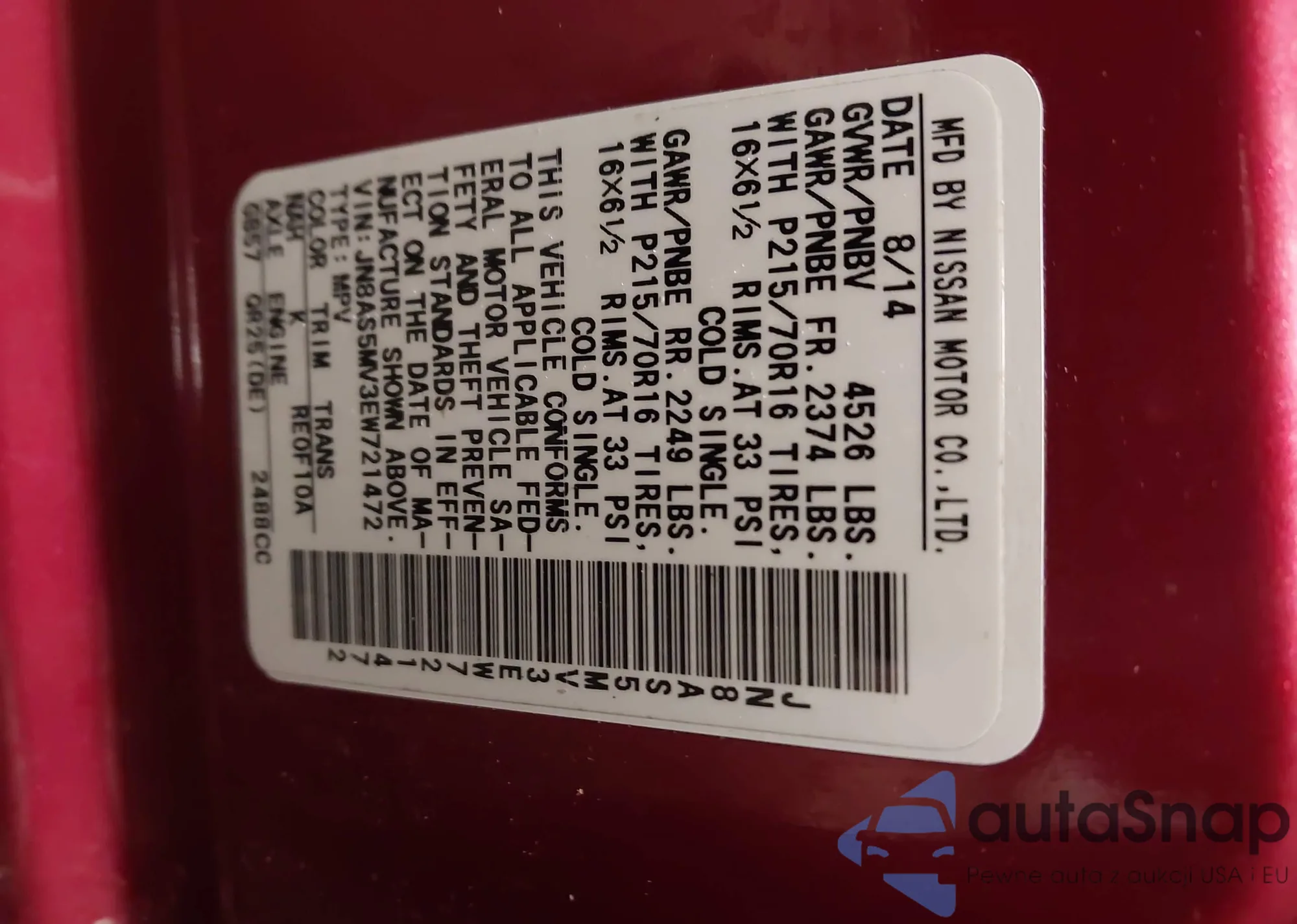 LOT: 43915367 VIN: JN1BV7AR8EM689255