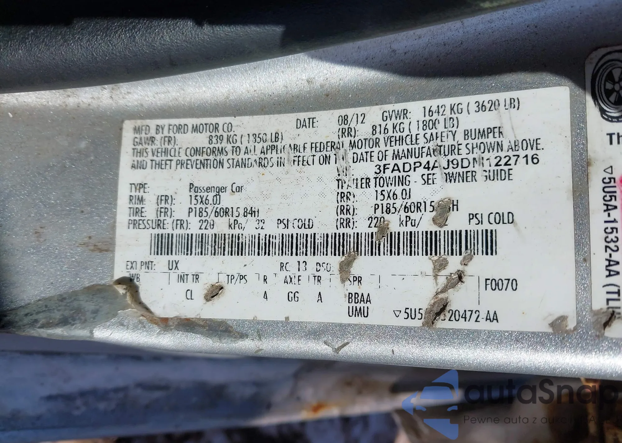 • VIN 3FADP4AJ9DM122716