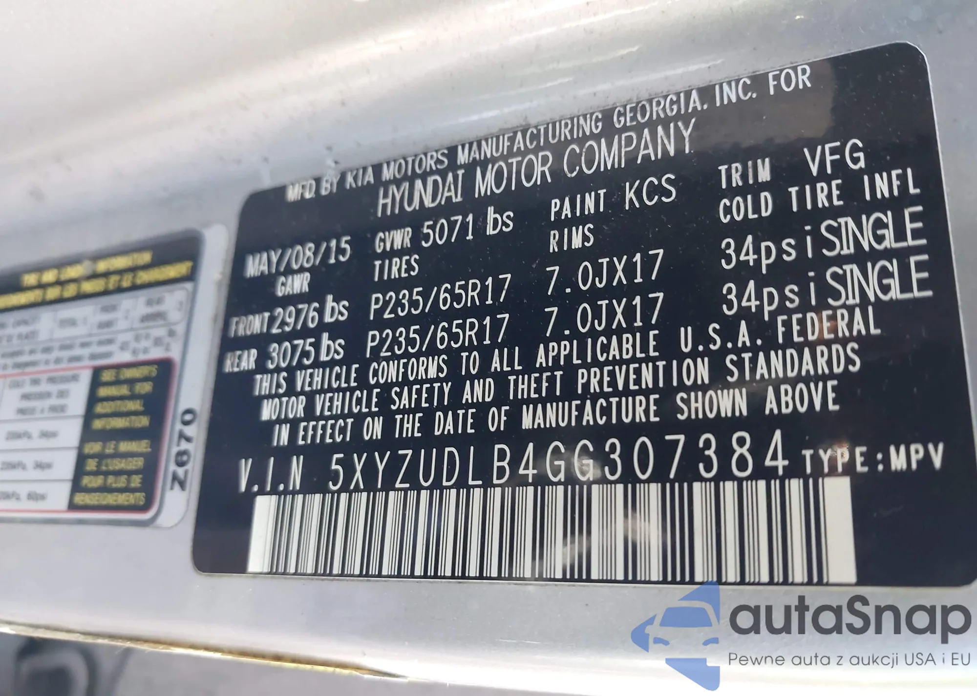 • VIN 5XYZUDLB4GG307384