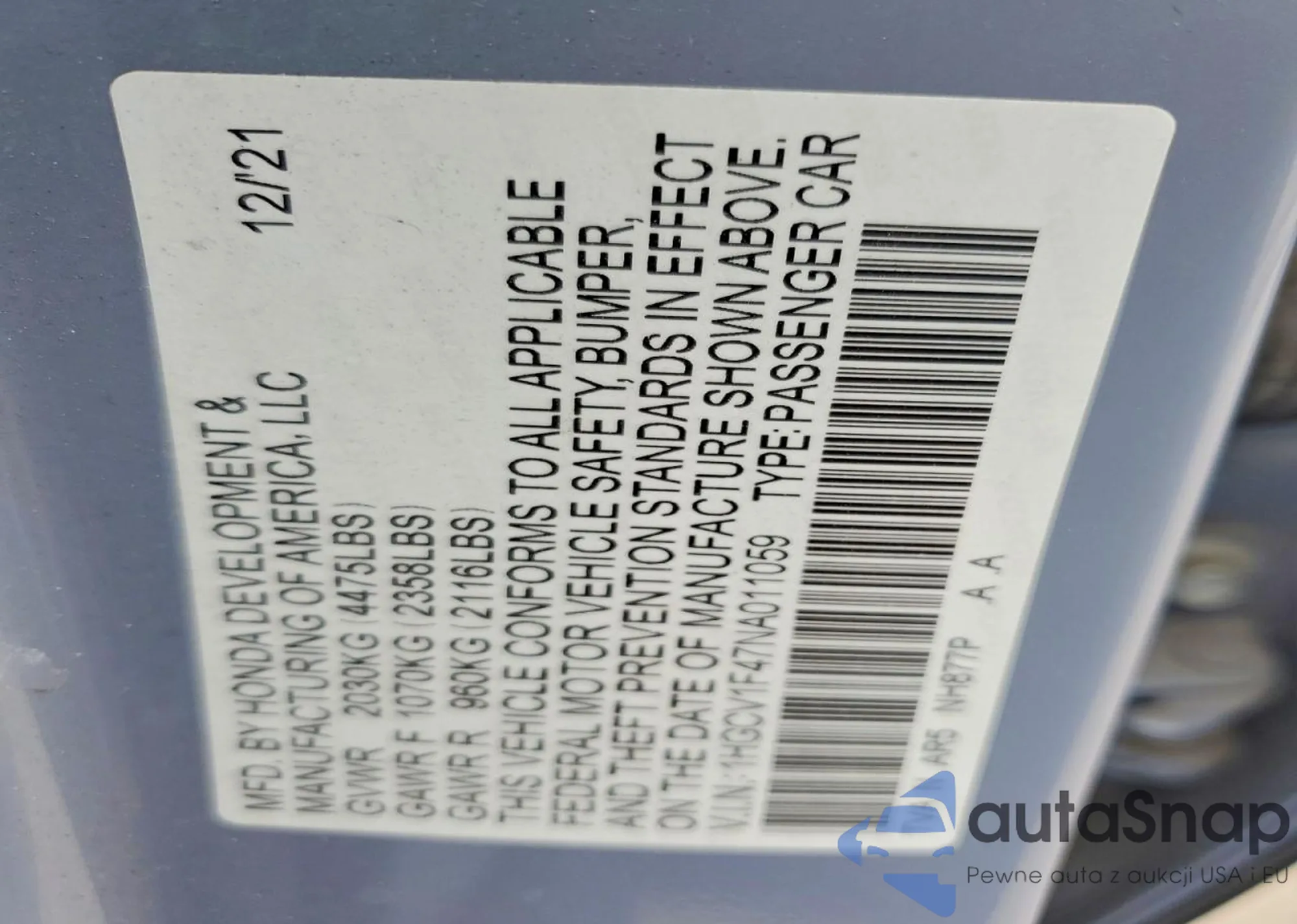 • VIN 1HGCV1F47NA011059