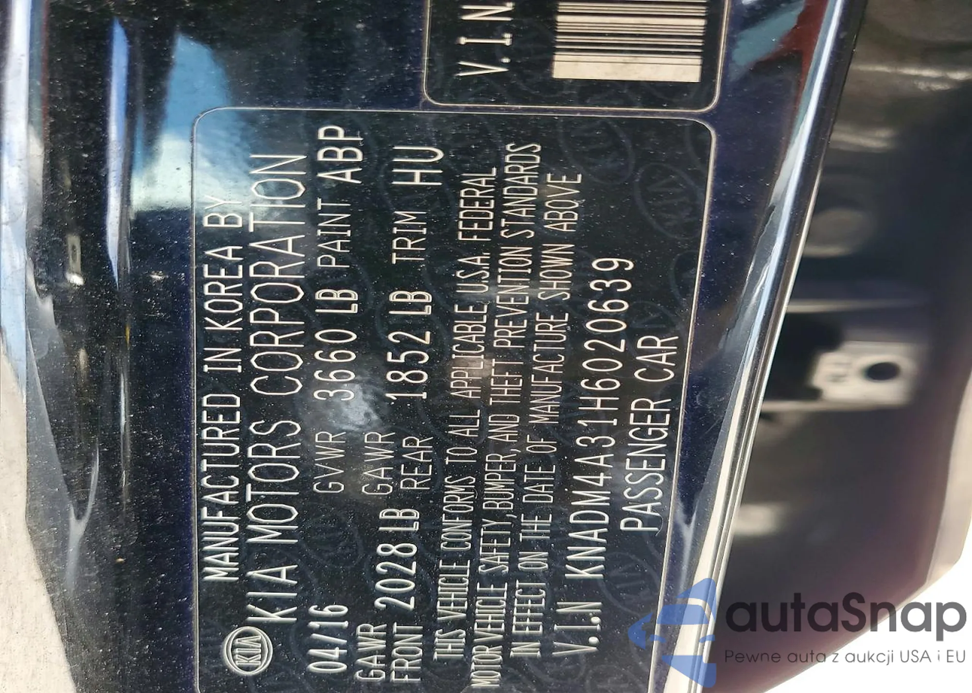 LOT: 97366365 VIN: KMHCT4AEXHU246866
