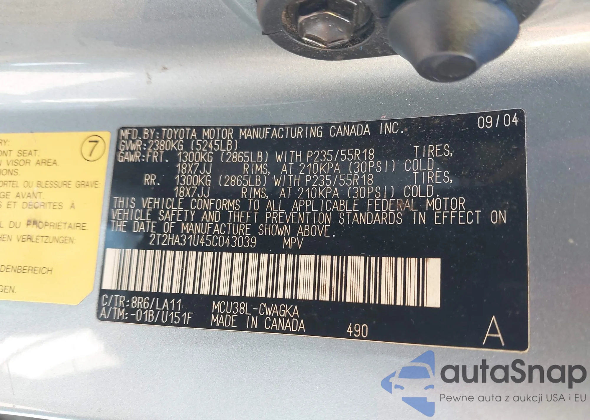 LOT: 44361277 VIN: 2T2HA31U45C043039